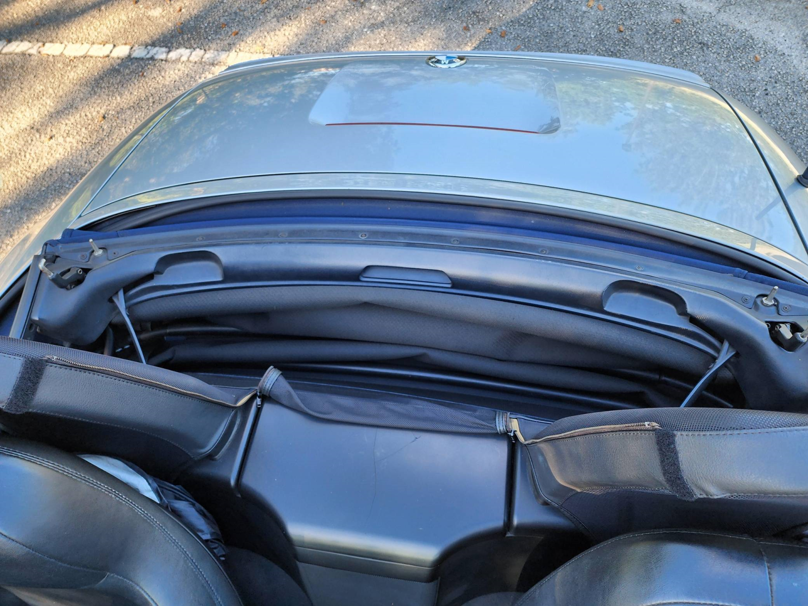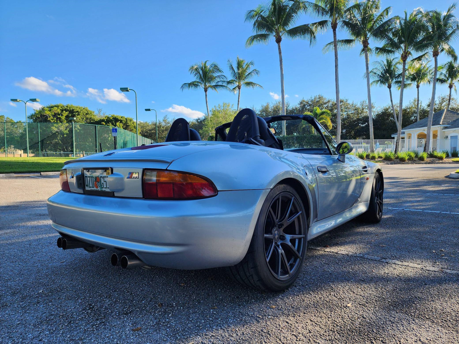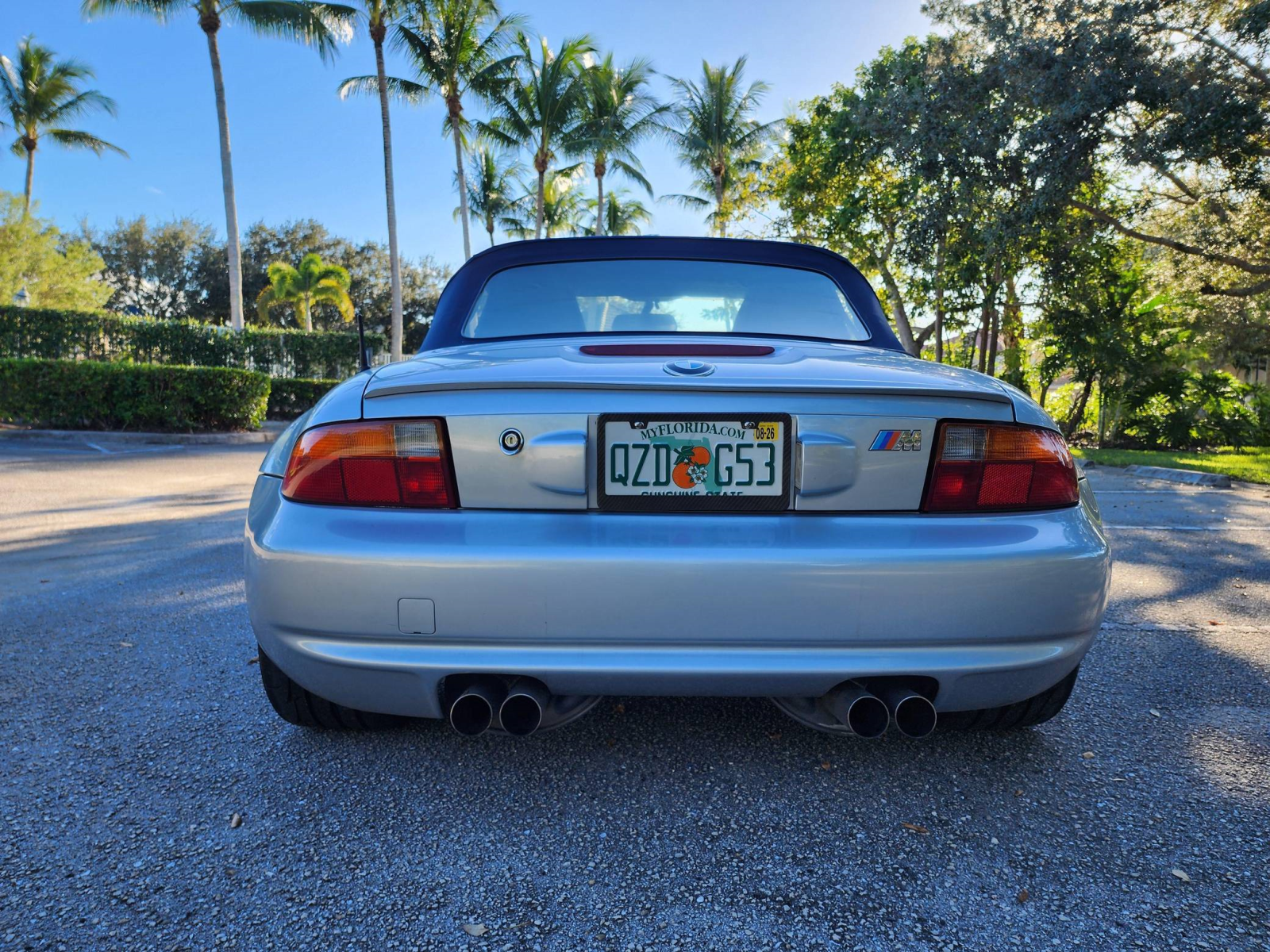 THIS… is a 1998 BMW Z3 M Roadster, finished in Arctic Silver Metallic with a body-colored hardtop, a blue soft top, and a black interior.