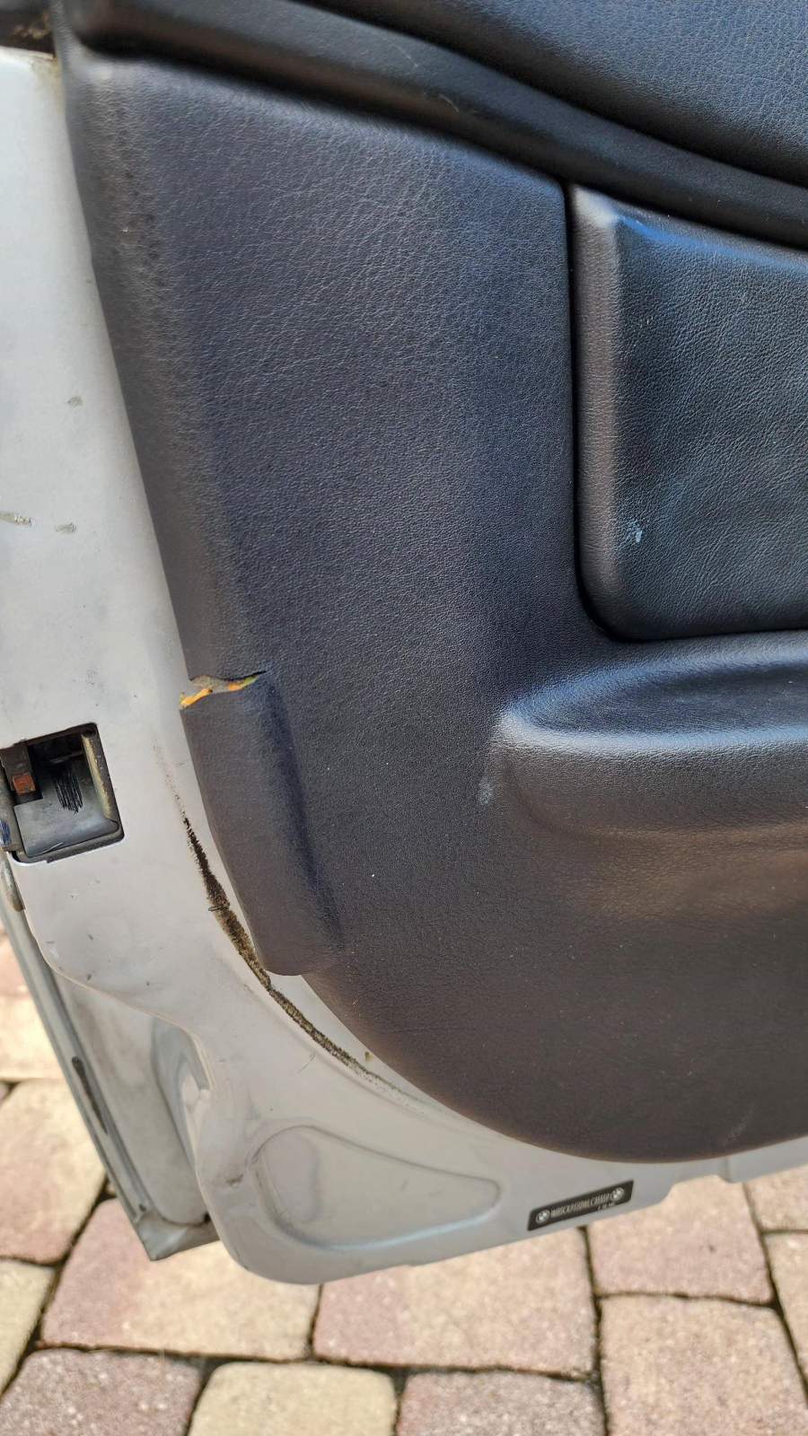 - Wear on interior touch points and trim panels; damaged driver’s interior door panel