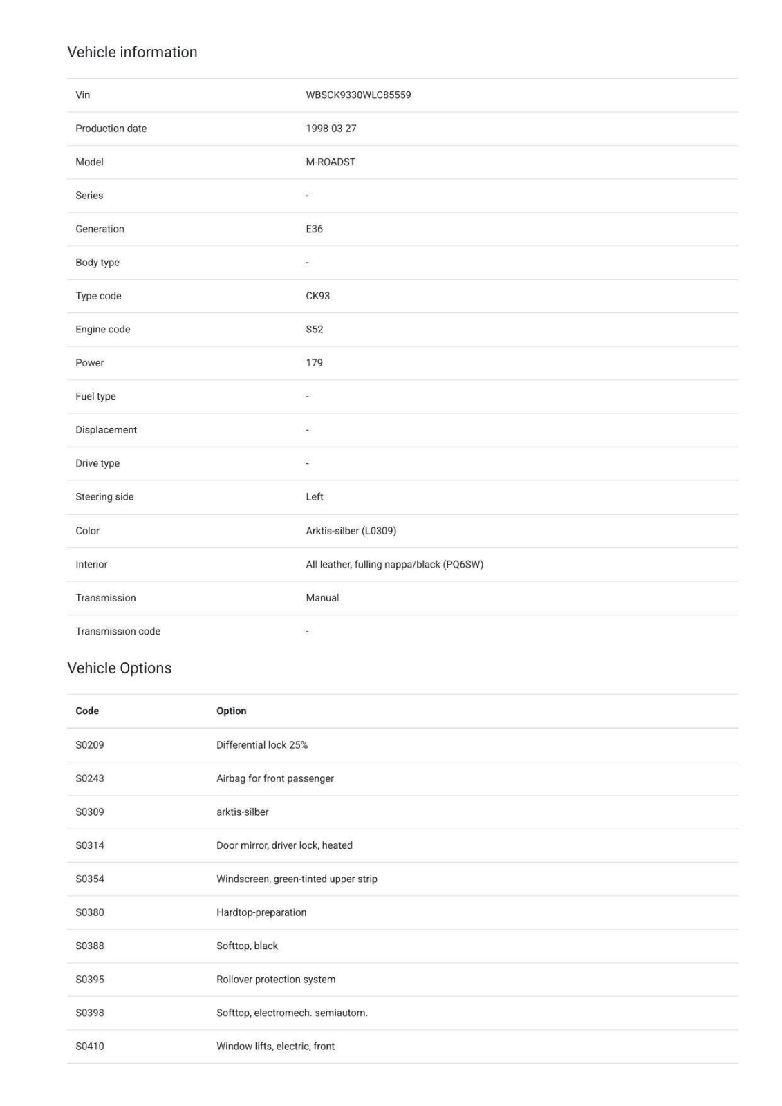 - According to the build sheet provided in the gallery, notable factory equipment includes a limited-slip differential, a power-operated soft top, Nappa leather upholstery, heated seats, and air conditioning.