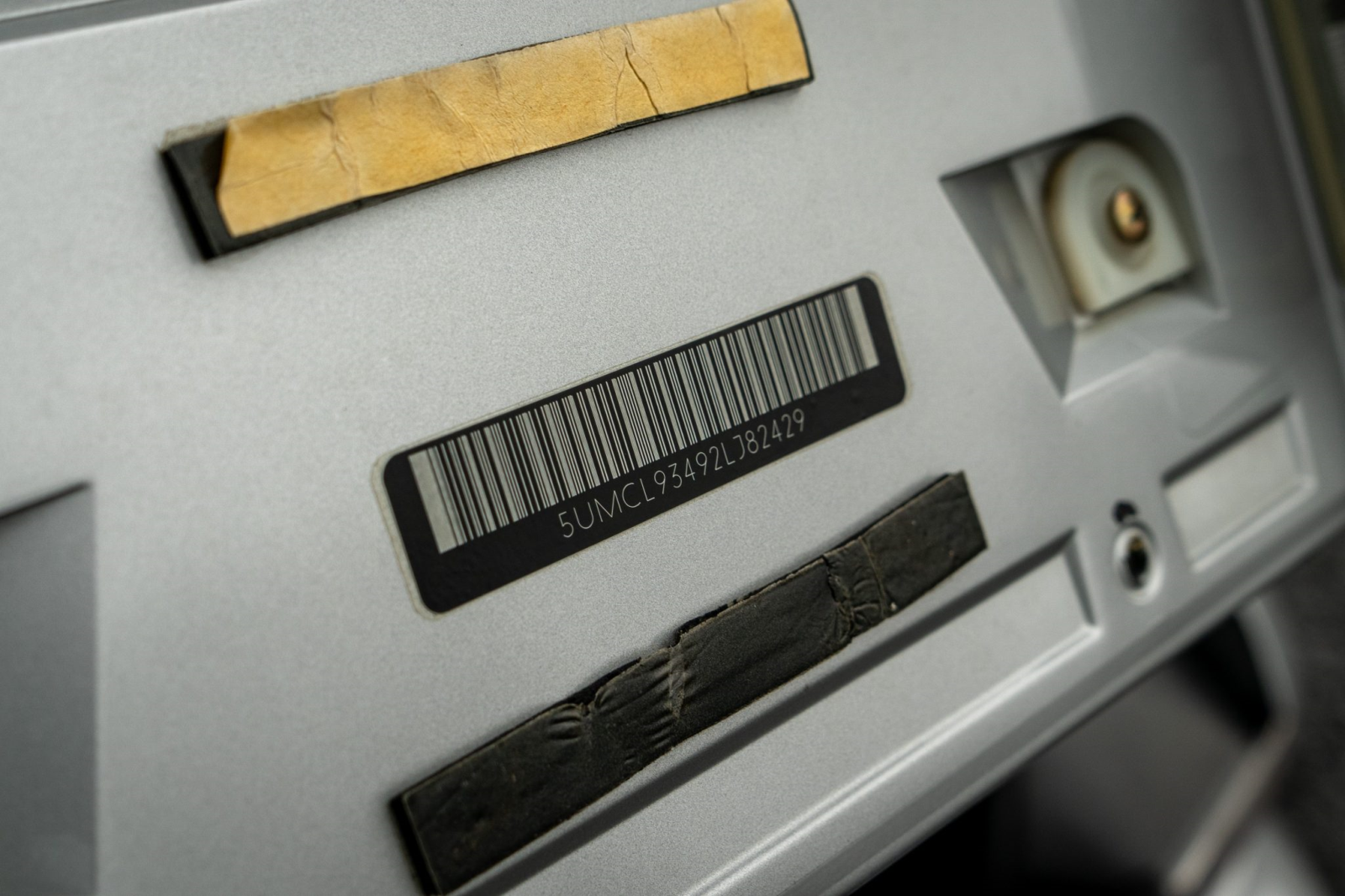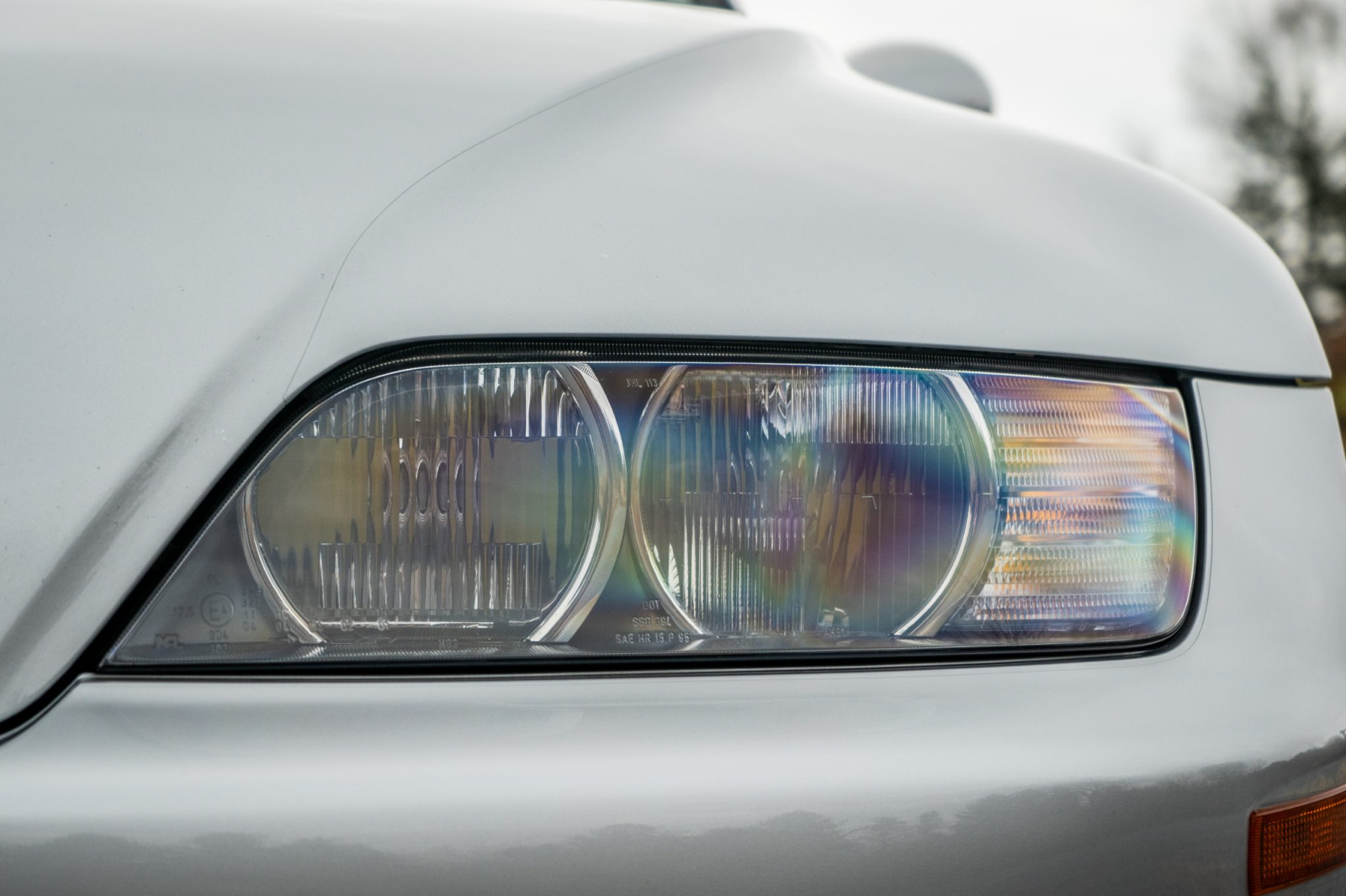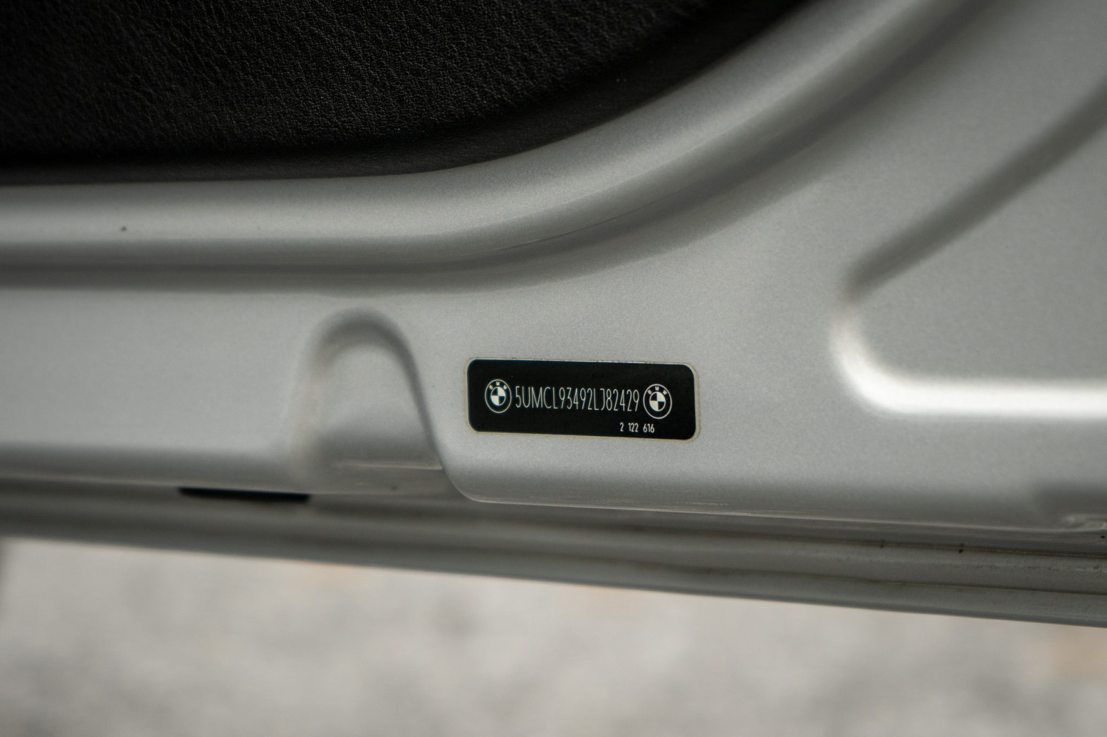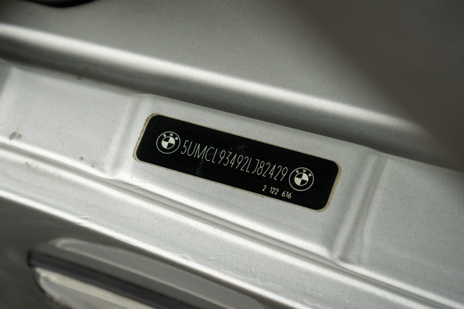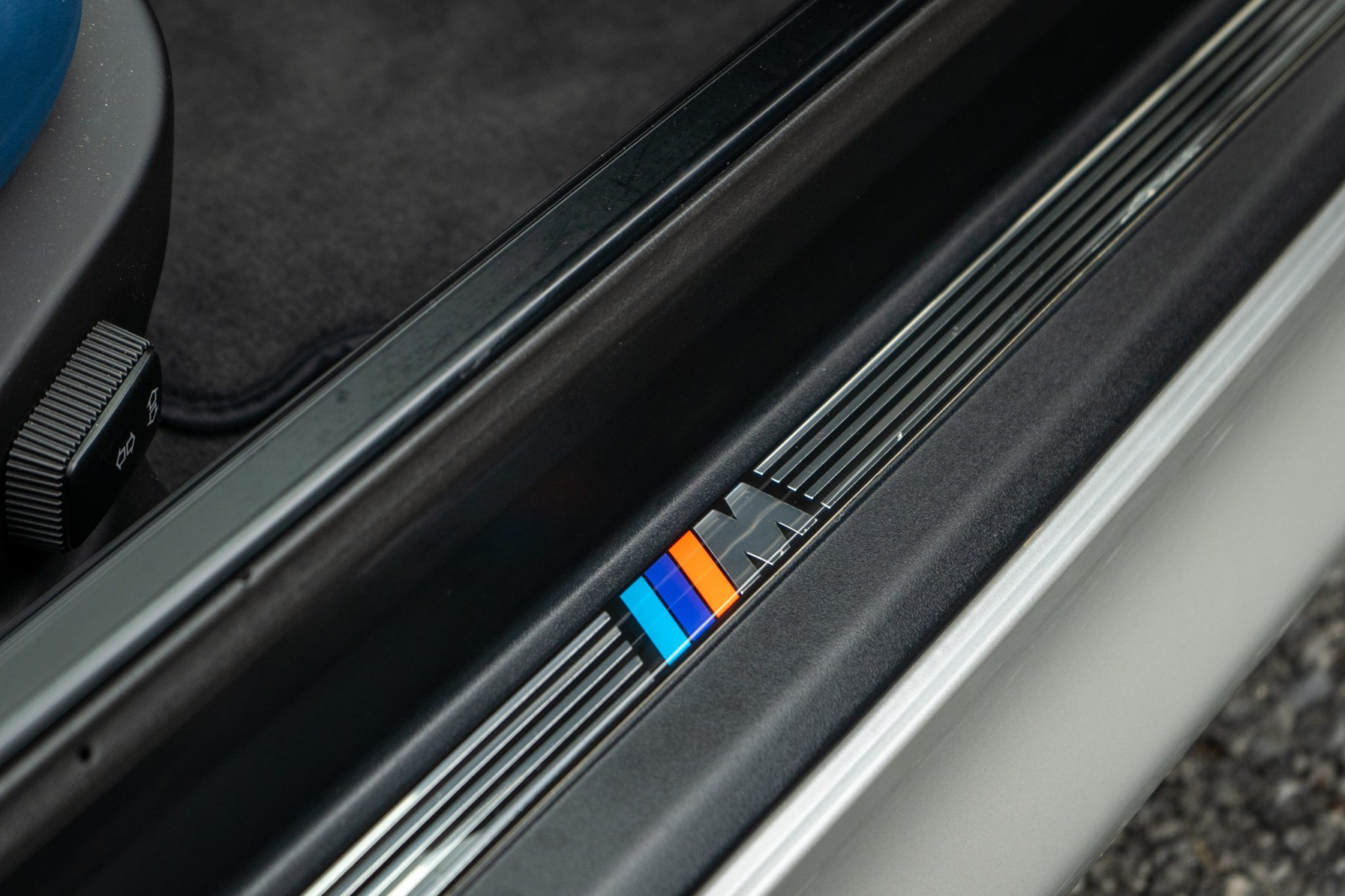 This M Roadster is one of six finished in Titanium Silver Metallic (354) over Estoril Blue and black Nappa leather for the North American market for the model year. Features include a power-operated dark blue convertible soft top as well as front fender vents and quad exhaust outlets. Window replacement is noted on the Carfax report in July 2016. Clear paint protection film covers the nose and photos of paint meter readings are provided in the gallery below.