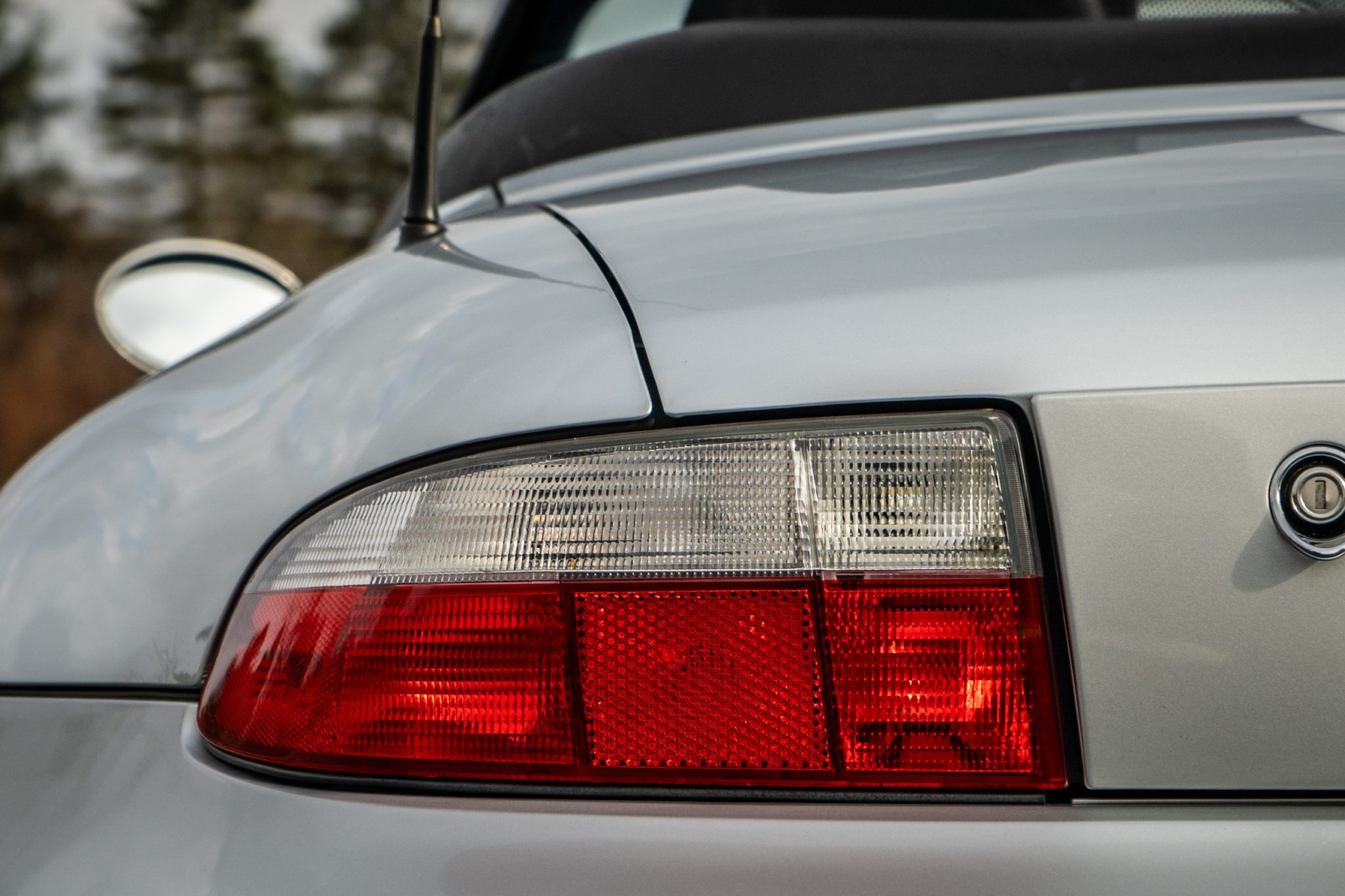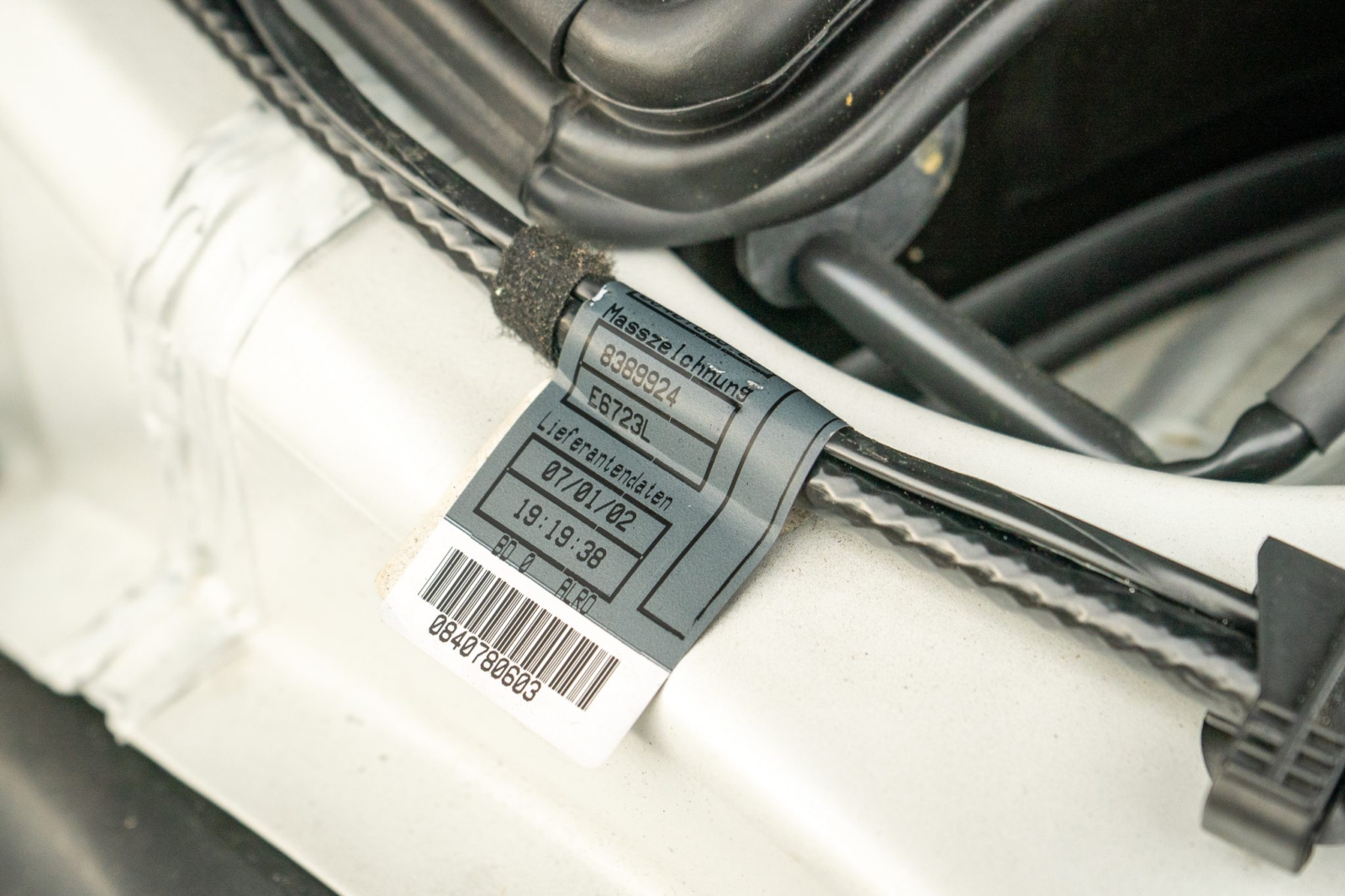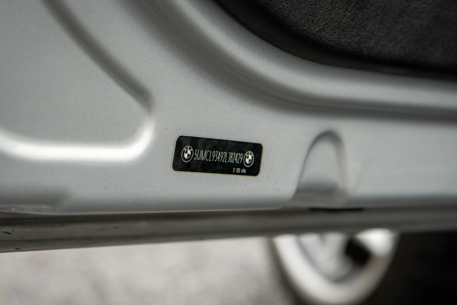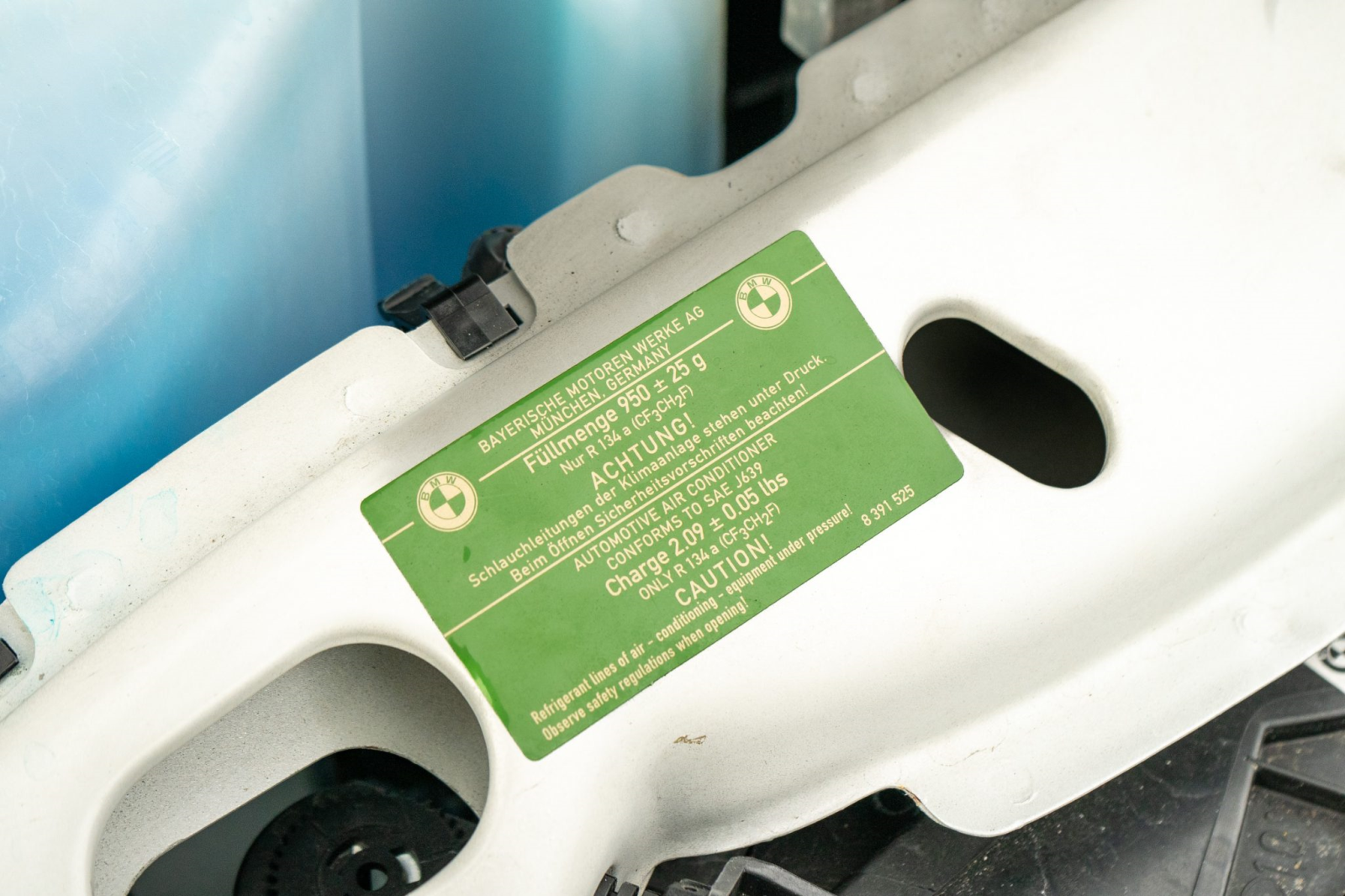 This M Roadster is one of six finished in Titanium Silver Metallic (354) over Estoril Blue and black Nappa leather for the North American market for the model year. Features include a power-operated dark blue convertible soft top as well as front fender vents and quad exhaust outlets. Window replacement is noted on the Carfax report in July 2016. Clear paint protection film covers the nose and photos of paint meter readings are provided in the gallery below.