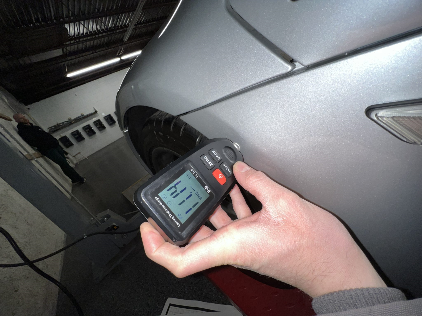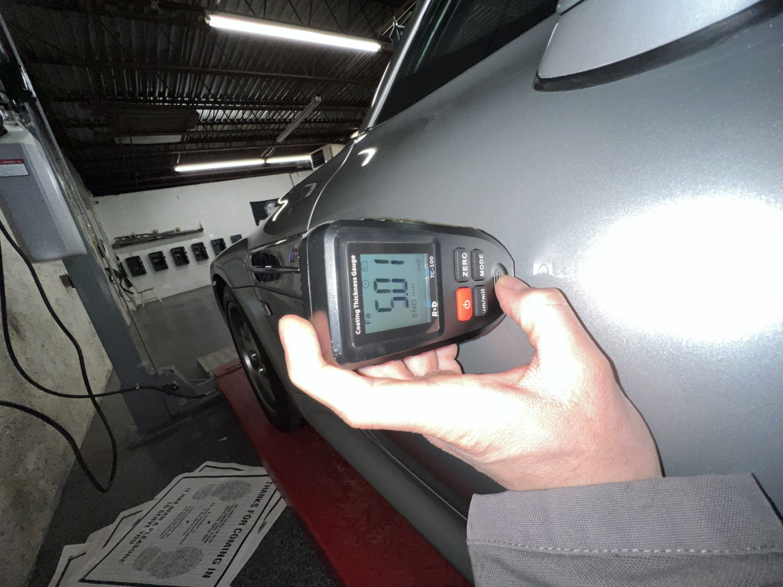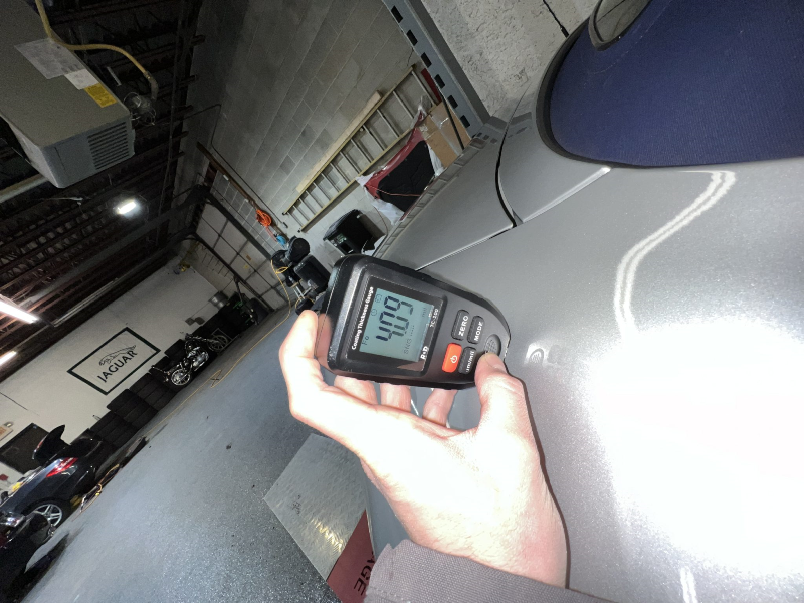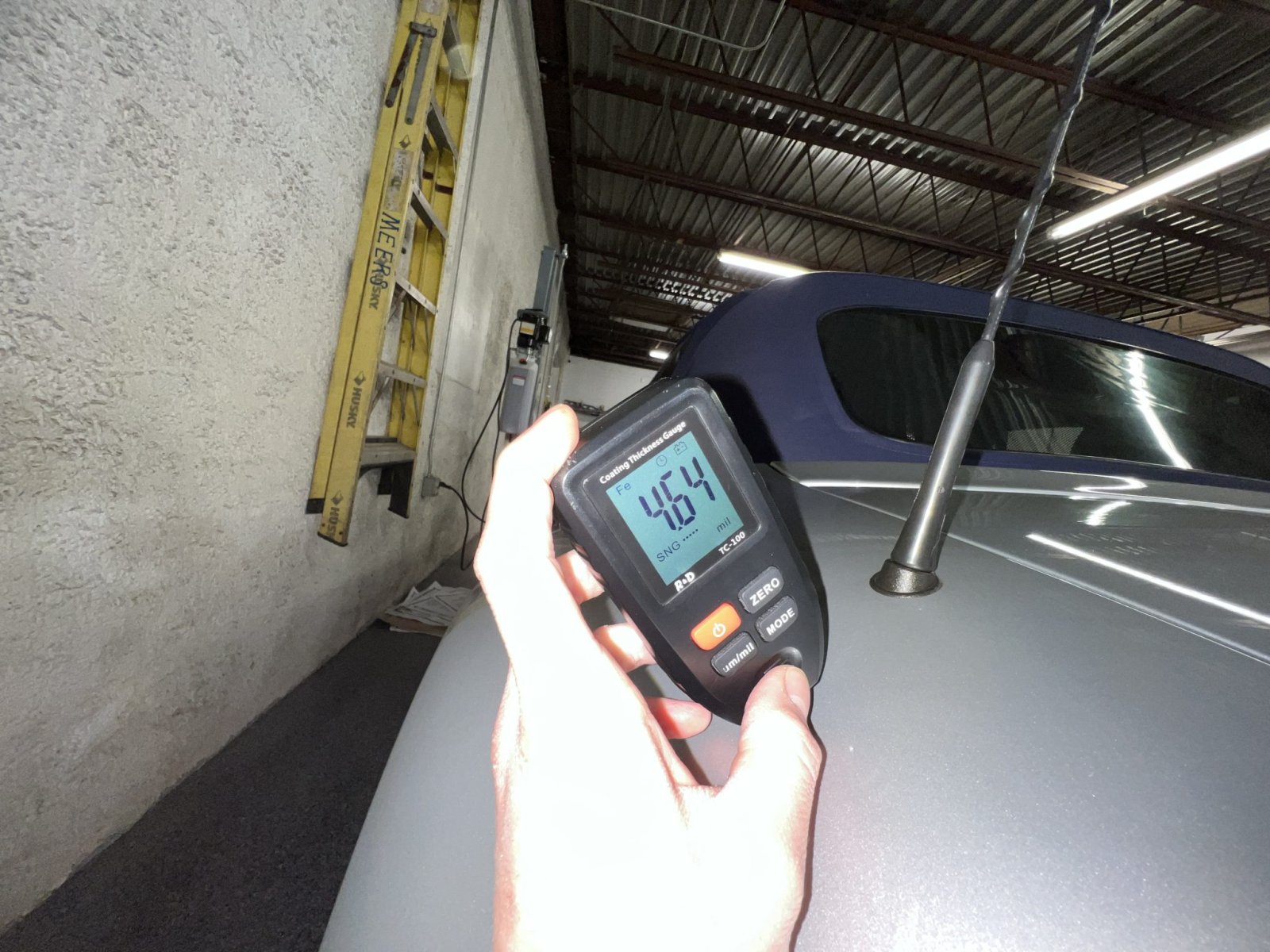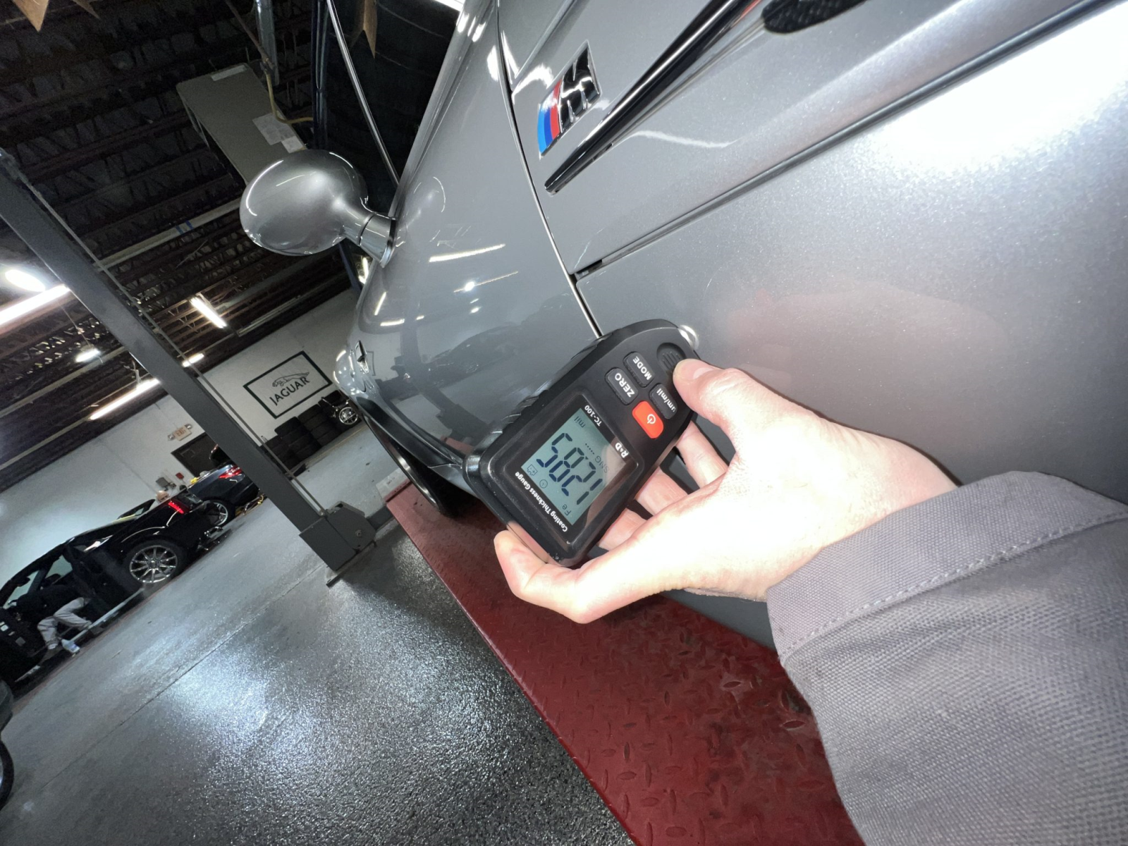 This M Roadster is one of six finished in Titanium Silver Metallic (354) over Estoril Blue and black Nappa leather for the North American market for the model year. Features include a power-operated dark blue convertible soft top as well as front fender vents and quad exhaust outlets. Window replacement is noted on the Carfax report in July 2016. Clear paint protection film covers the nose and photos of paint meter readings are provided in the gallery below.