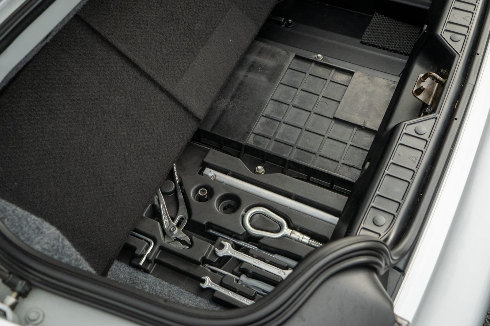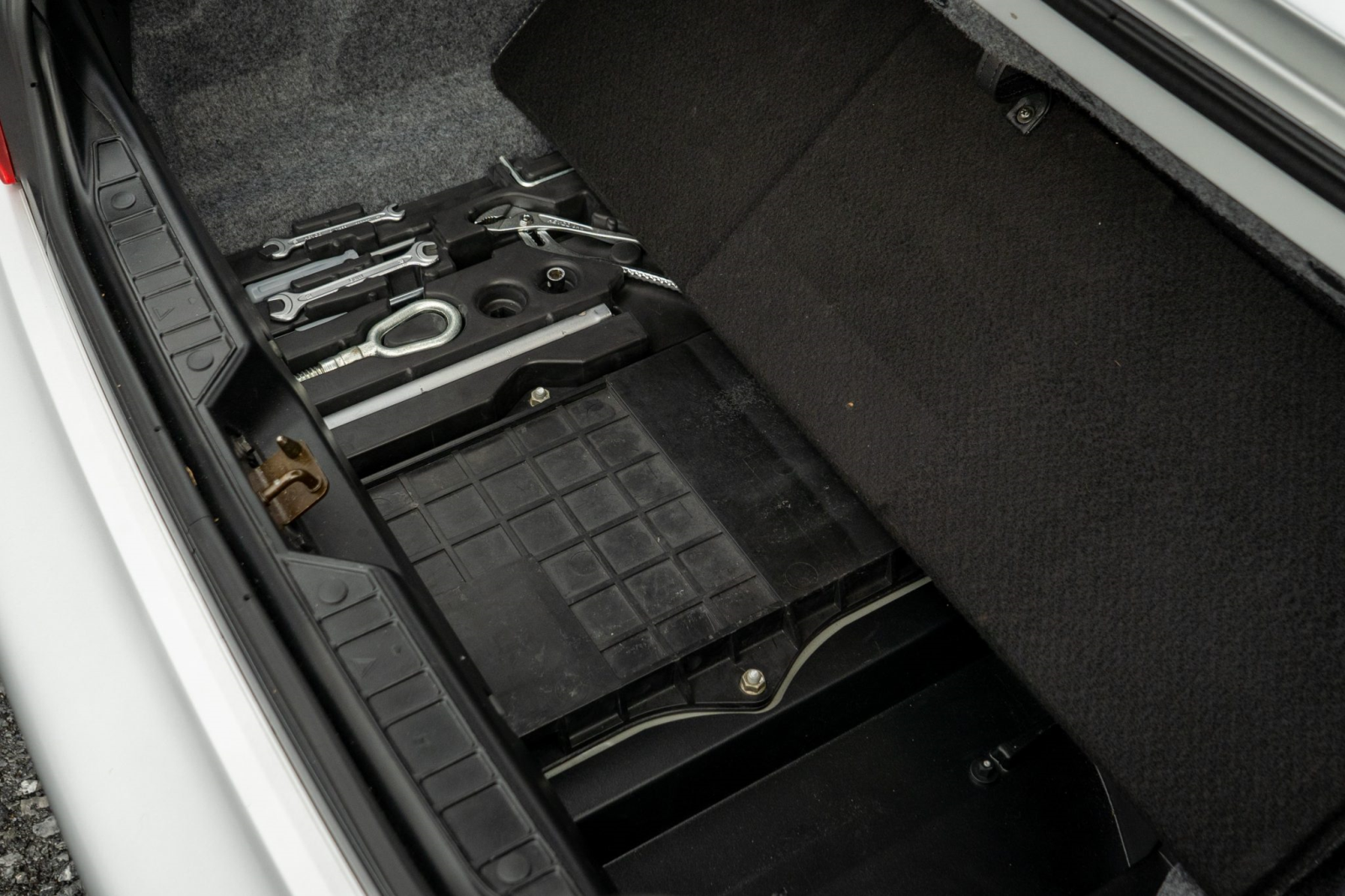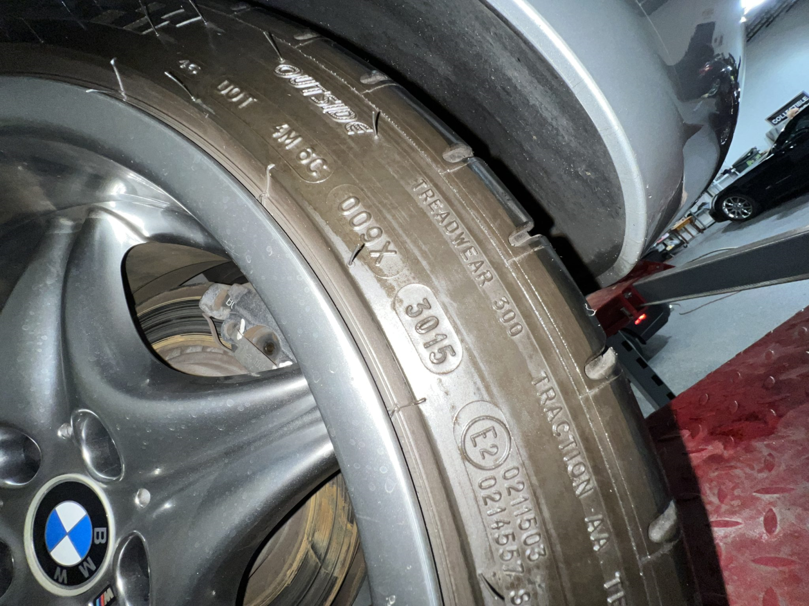 Shadow-finished 17″ Style 40 wheels are mounted with 225/45 front and 245/40 rear Michelin Pilot Super Sport tires that have date codes from 2015-2016. The car is equipped with Dynamic Stability Control (DSC) and All-Season Traction (AST), and braking is handled by four-wheel ventilated discs.