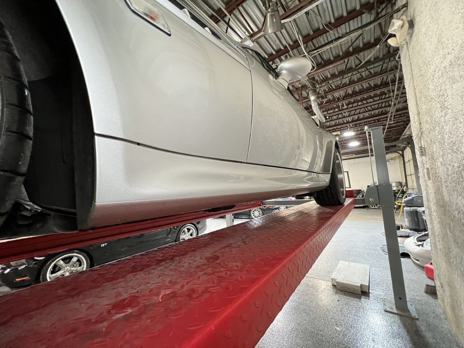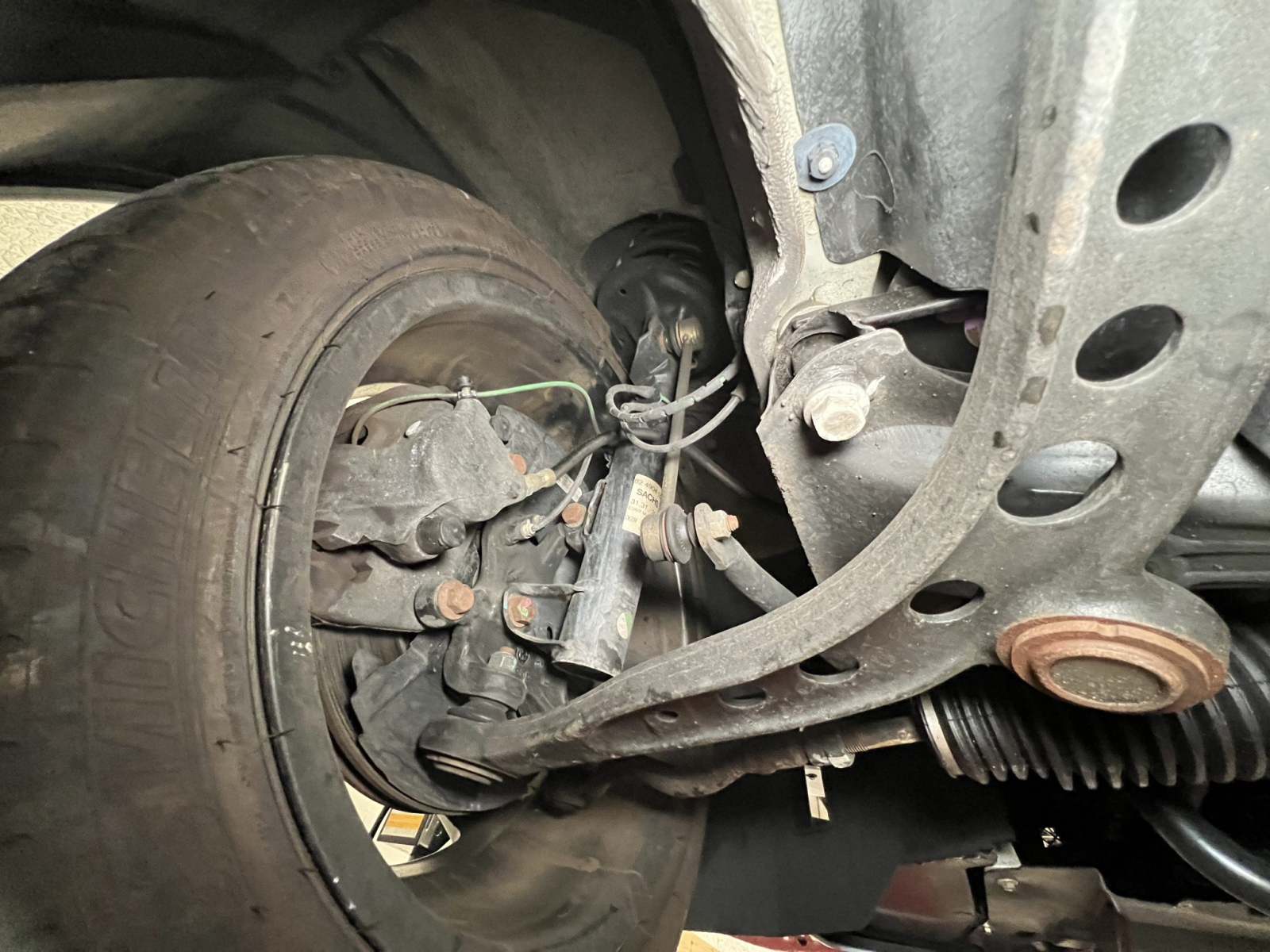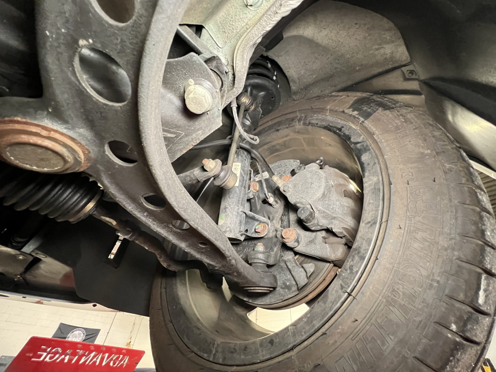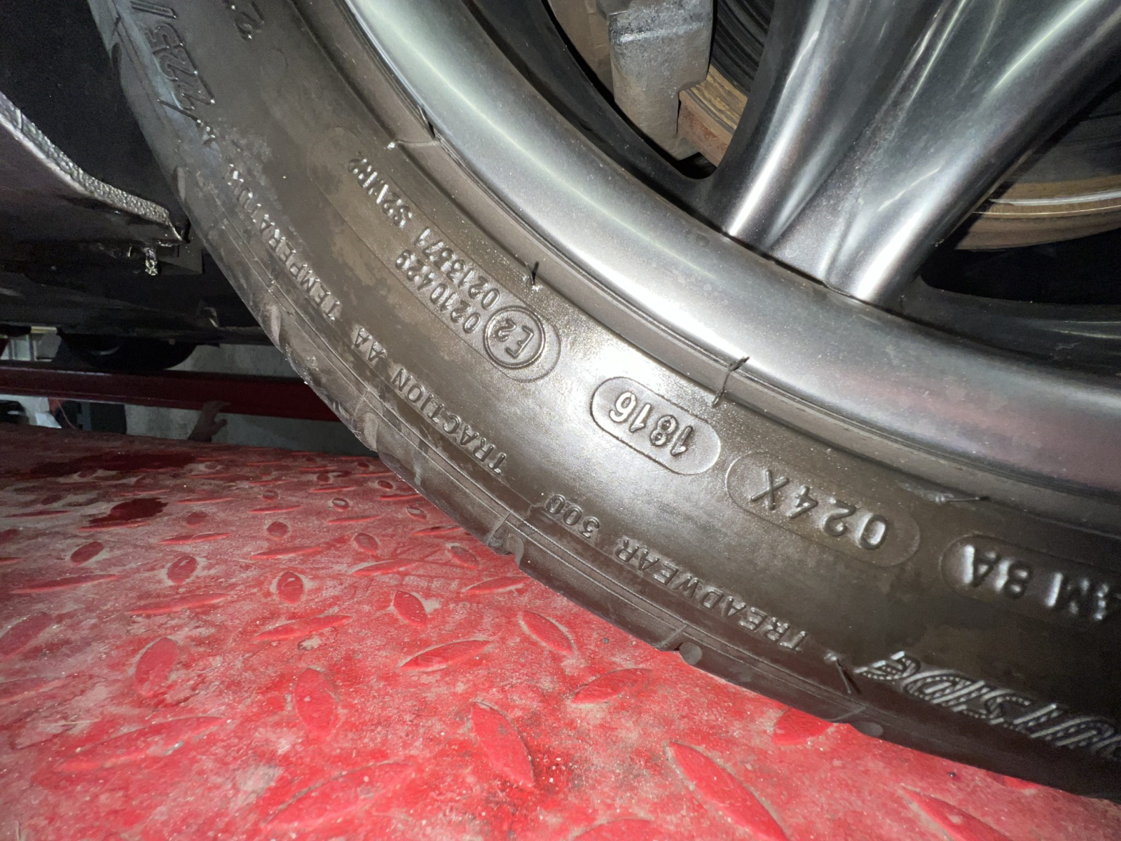 Shadow-finished 17″ Style 40 wheels are mounted with 225/45 front and 245/40 rear Michelin Pilot Super Sport tires that have date codes from 2015-2016. The car is equipped with Dynamic Stability Control (DSC) and All-Season Traction (AST), and braking is handled by four-wheel ventilated discs.