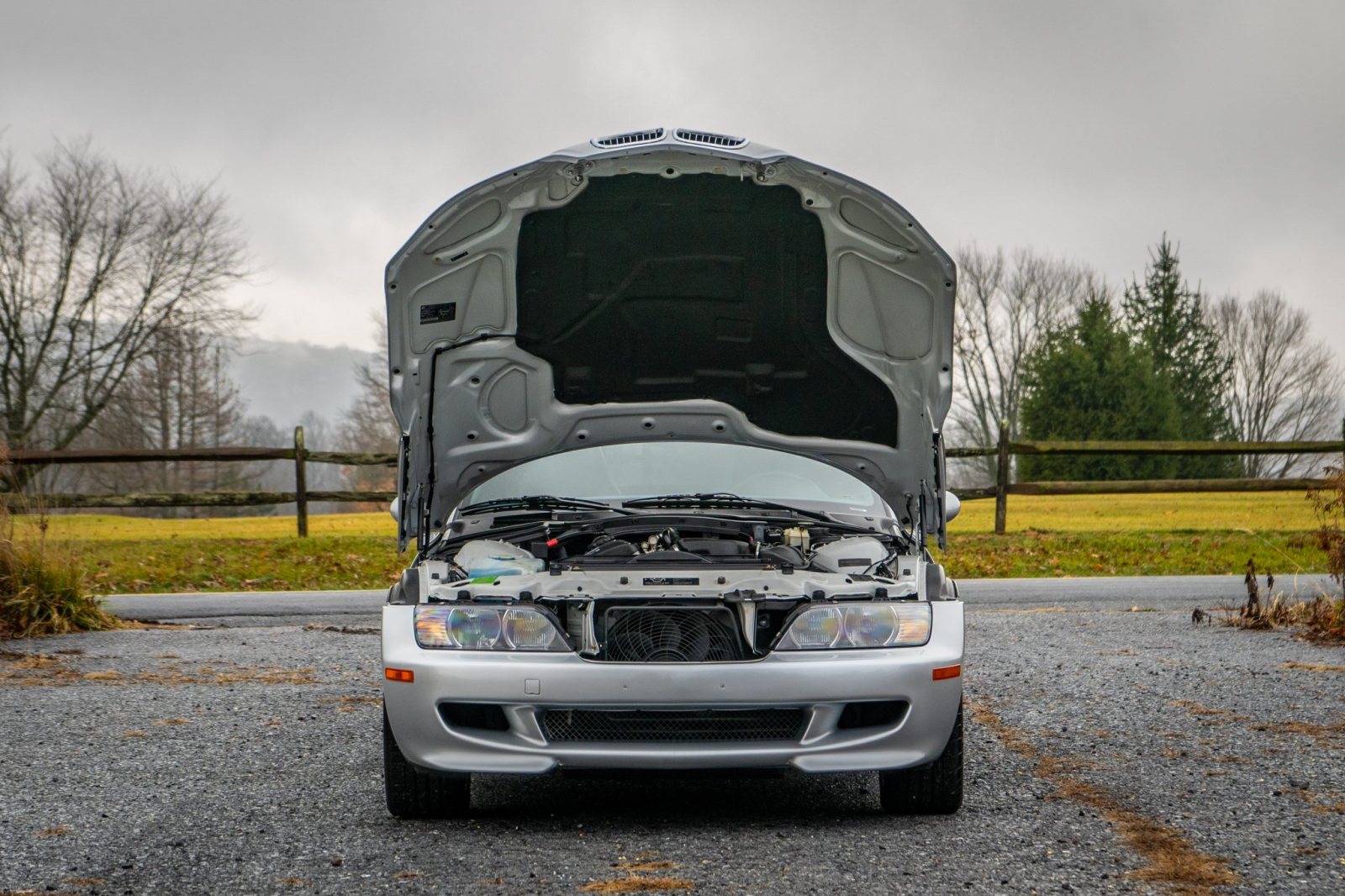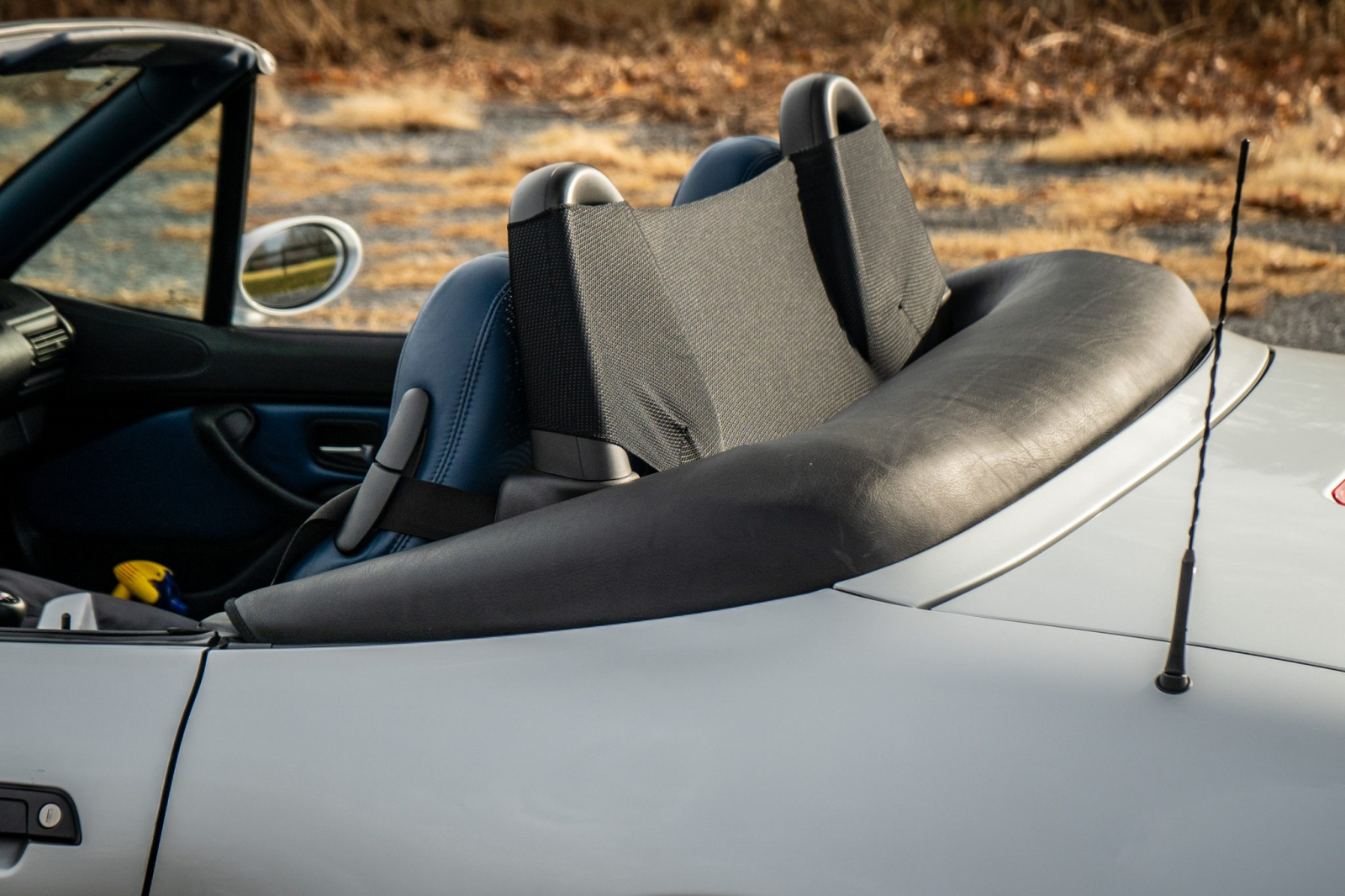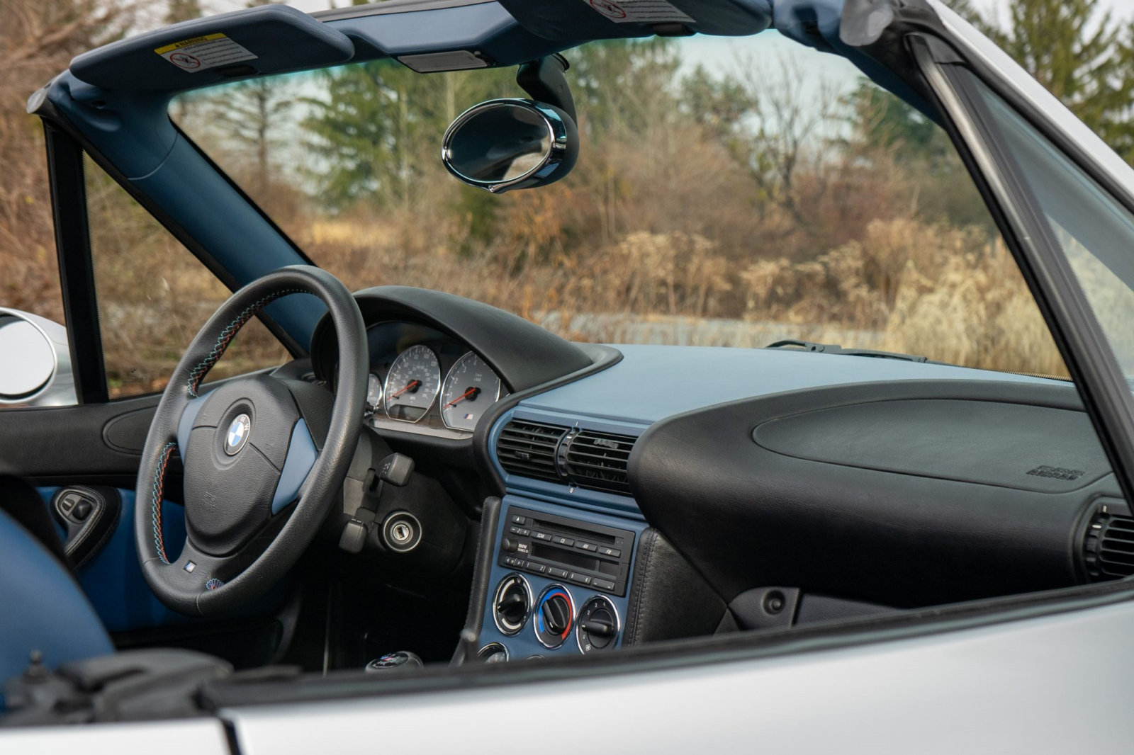 This 2002 BMW M Roadster has 13k miles and is powered by a 3.2-liter S54 inline-six linked with a five-speed manual transmission and a limited-slip differential. It is finished in Titanium Silver Metallic over Estoril Blue and black Nappa leather and features Shadow-finished 17″ Style 40 wheels, a dark blue soft top, heated sport seats, and a Harman Kardon sound system. The car spent time in eight different states before the selling dealer’s recent acquisition. This M Roadster is now offered by the selling dealer in Pennsylvania with a car cover, a wind deflector, literature, December 2023 service records, a clean Carfax report, and a clean Florida title.
