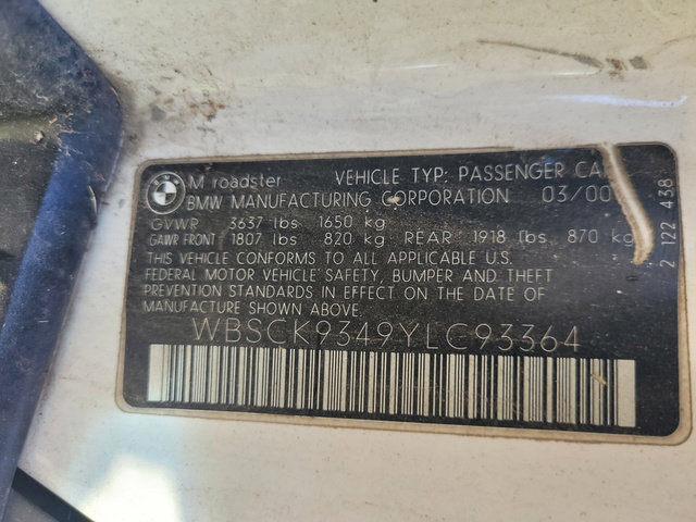 2000 BMW Z3 M Roadster 3.2L Naturally Aspirated I6 5-Speed Manual RWD Alpine White Exterior Black Leather Leather Interior Black Convertible Soft Top Center Console Valet In Dash Compact Disc Player