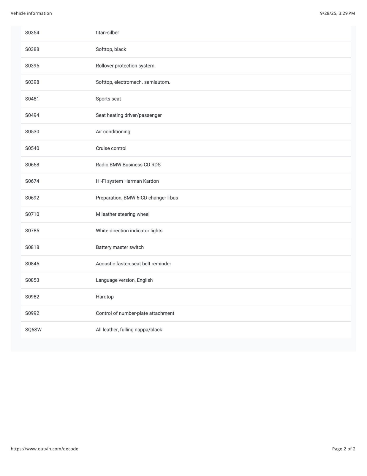 - According to the build sheet provided in the gallery, notable factory equipment includes 17-inch Style 40 wheels, a limited-slip differential, a power-retractable soft top, a hard top, Nappa leather upholstery, and heated seats. The seller reports no notable modifications.