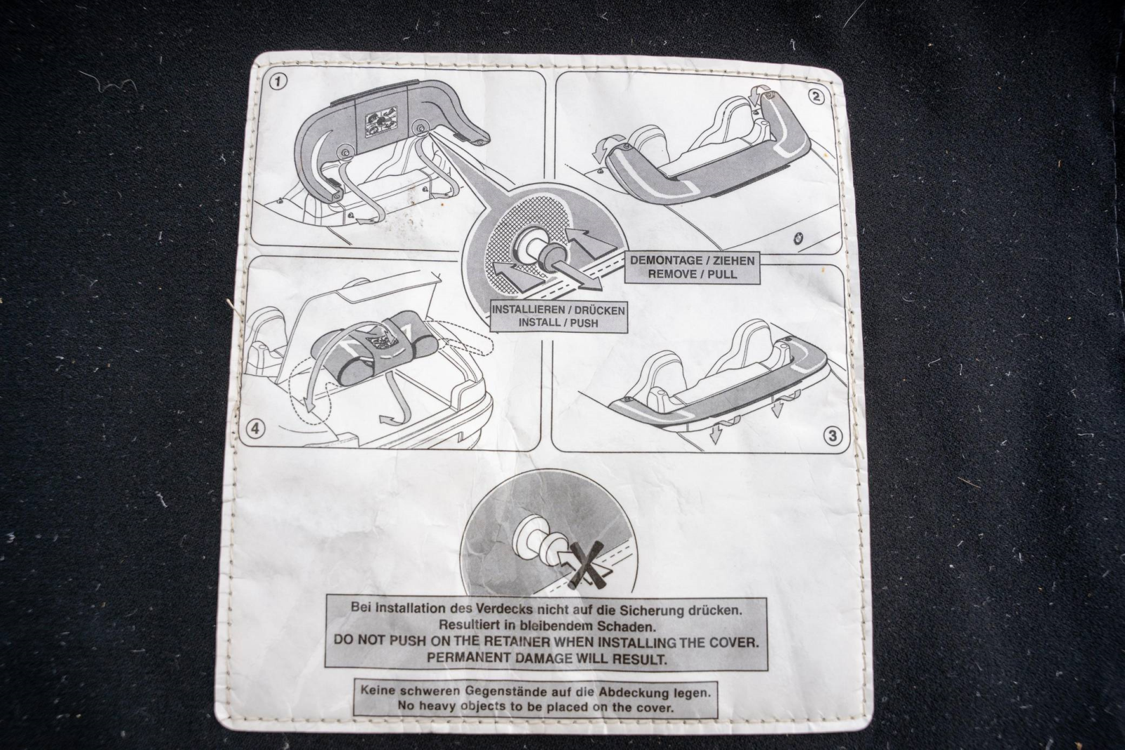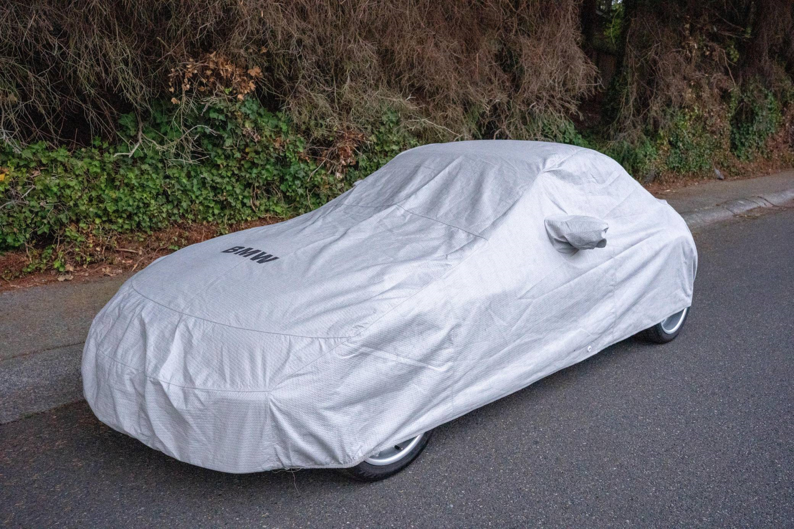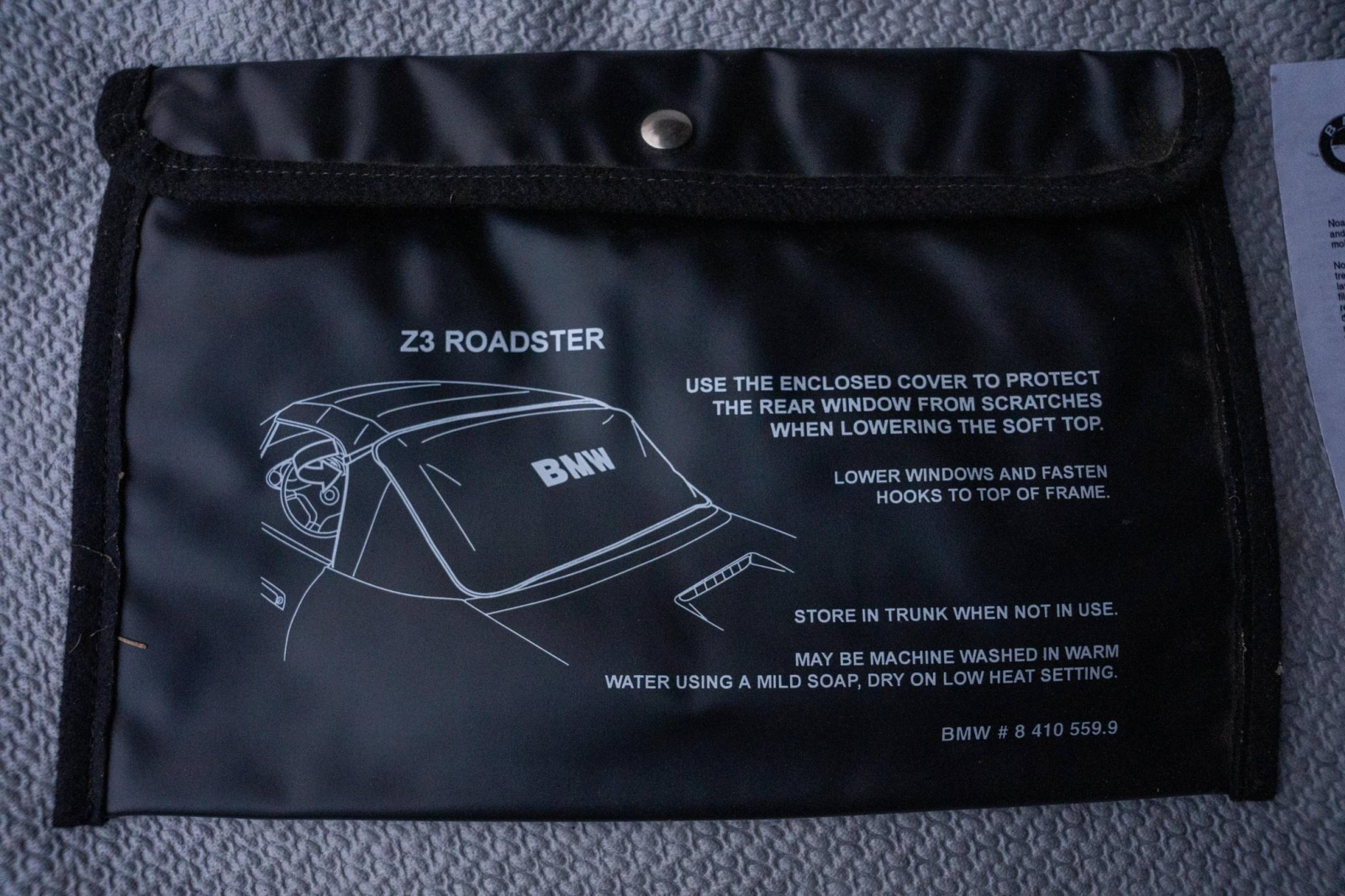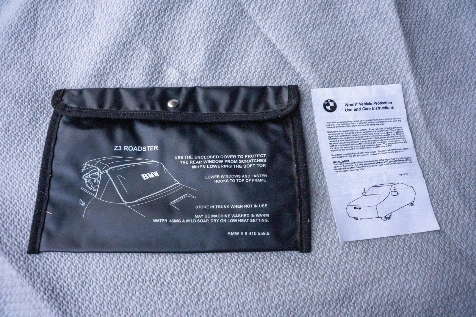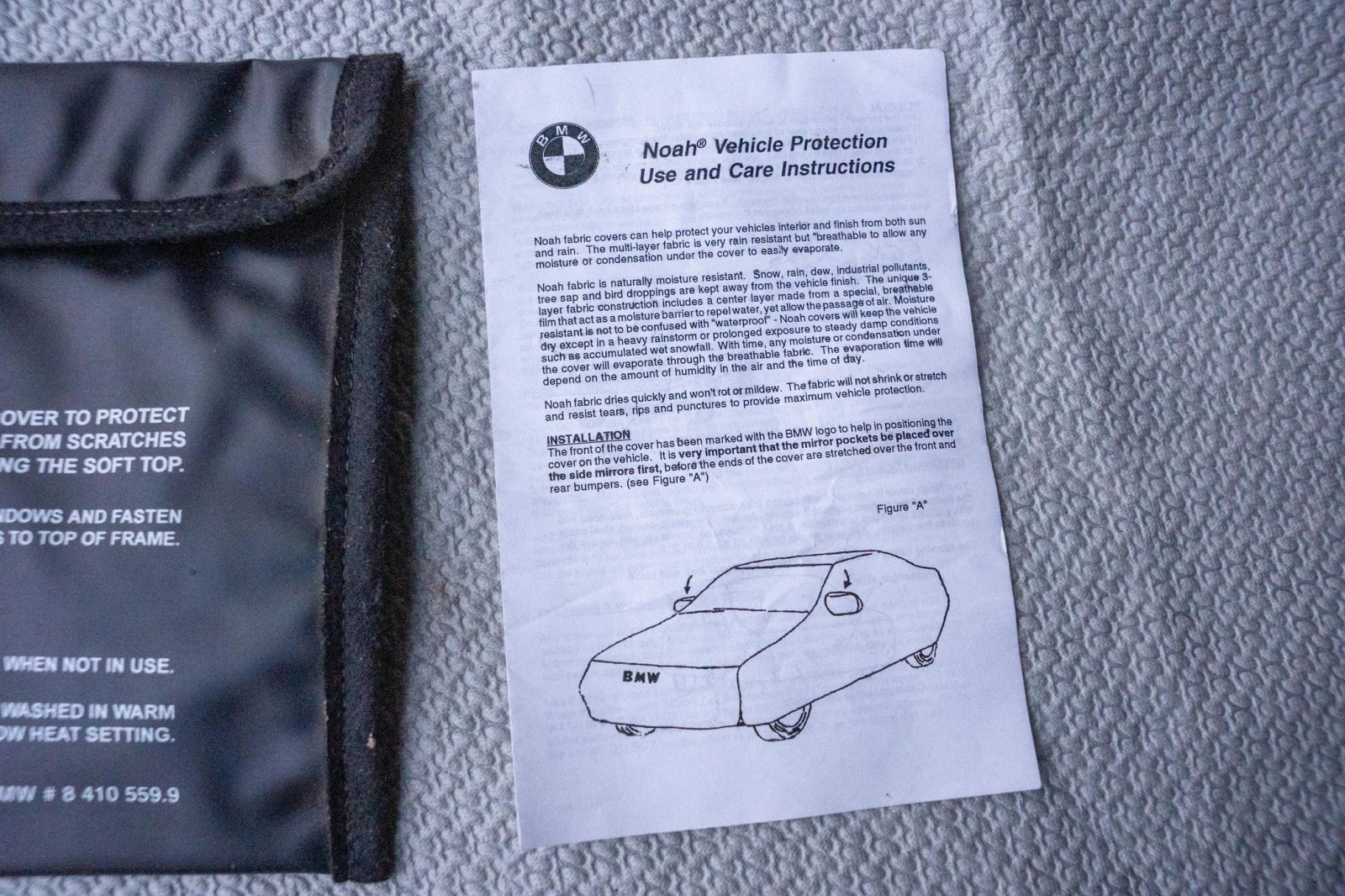 - BMW tonneau cover, car cover, hard top bag, tire inflator and tool kit, and windscreen deflector