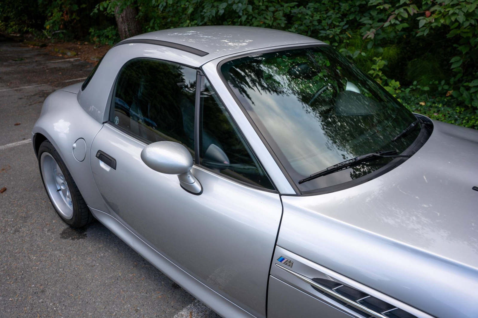THIS… is a 2000 BMW Z3 M Roadster, finished in Titanium Silver Metallic with a body-color hardtop, a black soft top, and a black interior.