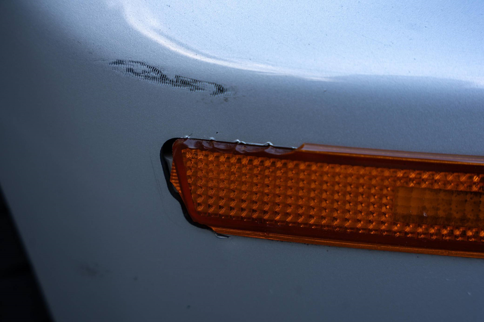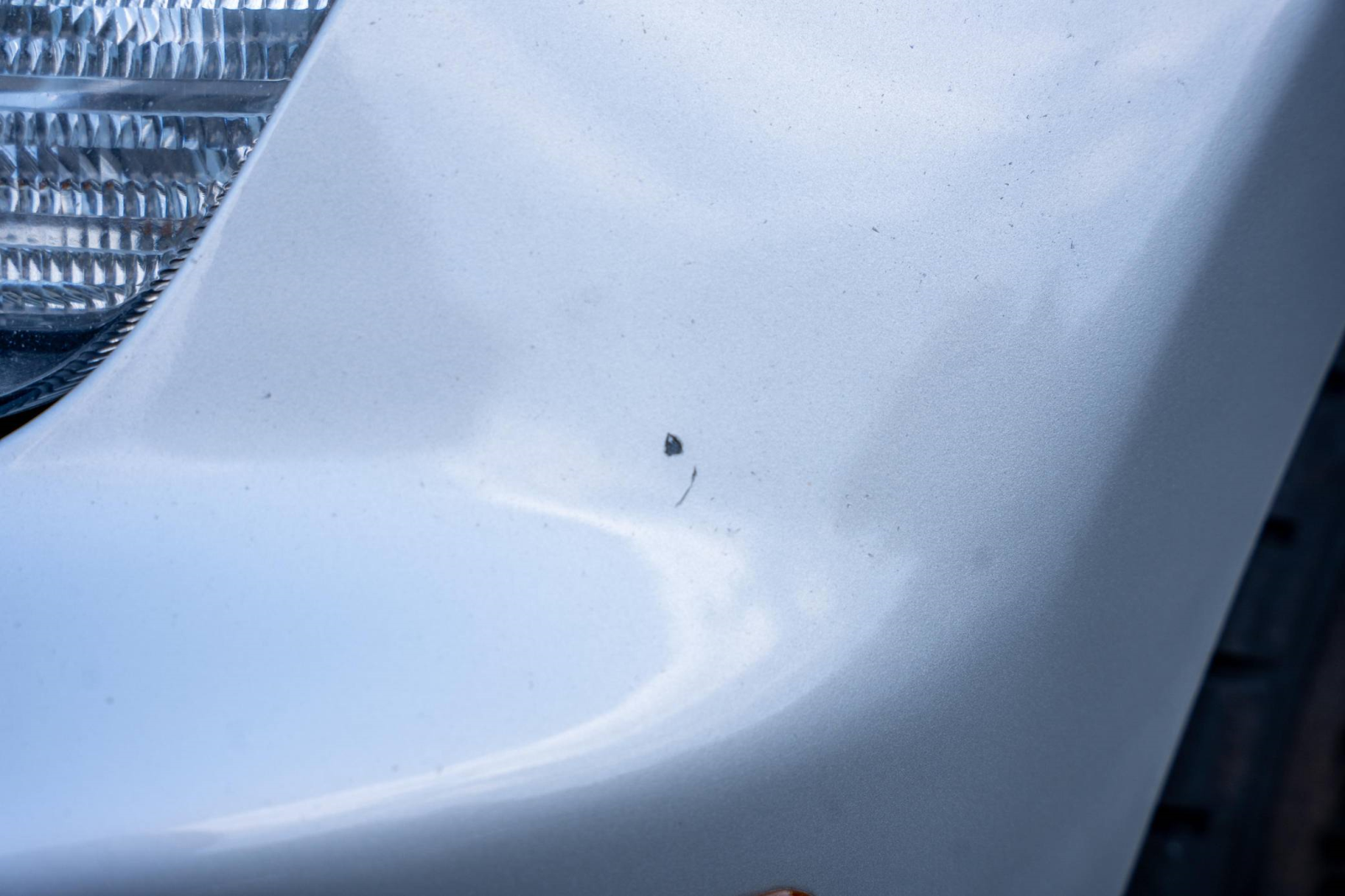 - Chips and scuffs on front fascia; damaged lower grille insert and front reflectors