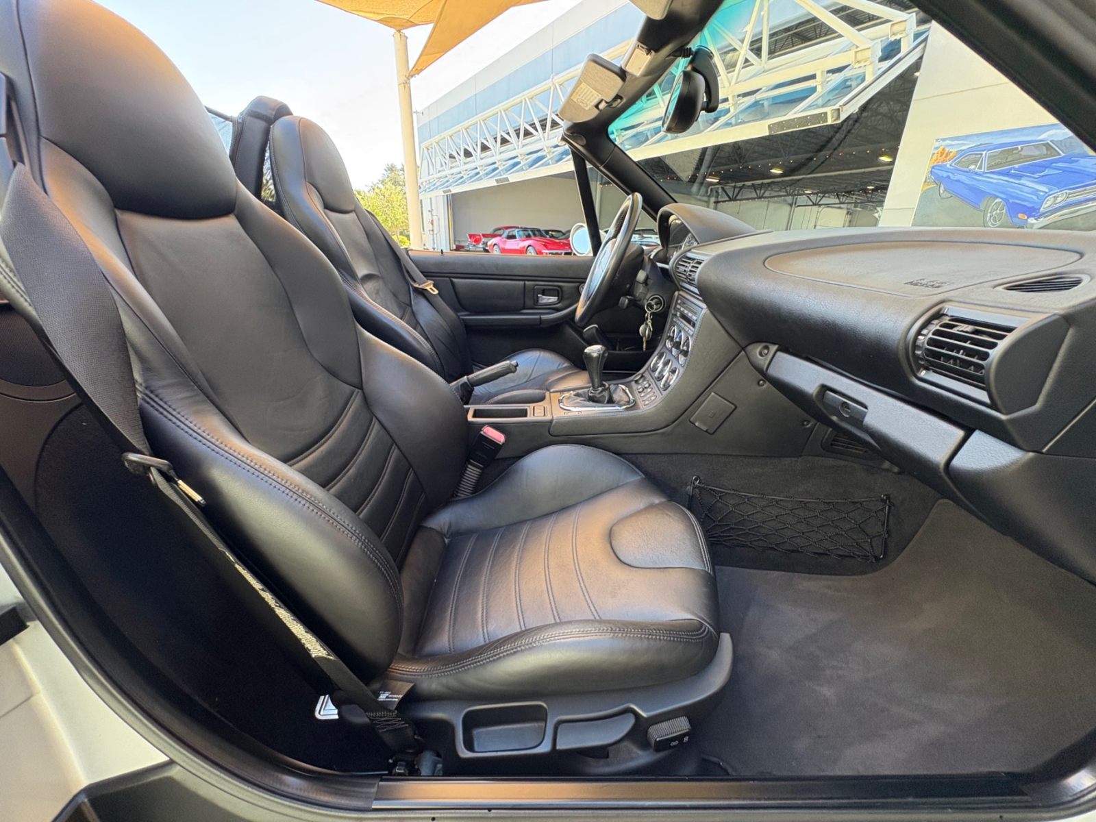 The Z3's exterior is presented in a striking silver that exudes a timeless elegance. Its condition is so pristine; it’s as though the car has been frozen in time. The paintwork remains immaculate, a testament to the sheltered and careful life it has led, shielded from rain and harsh environments. The sleek lines and classic roadster profile not only promise a head-turning road presence but also ensure an aerodynamic performance.