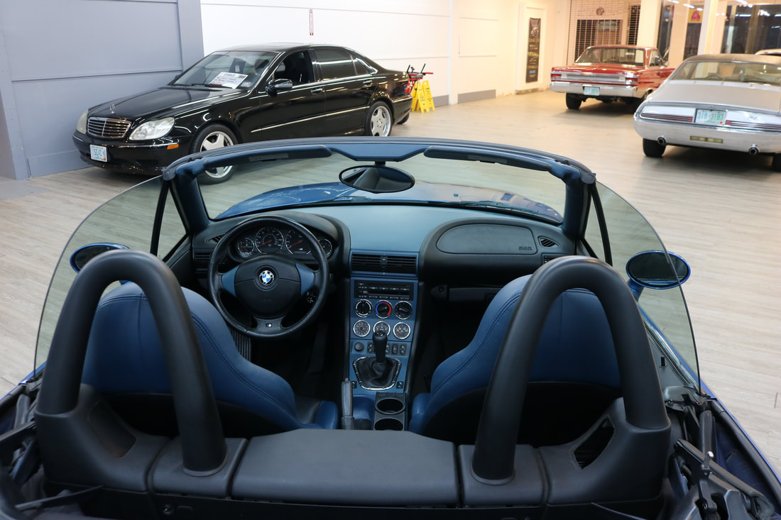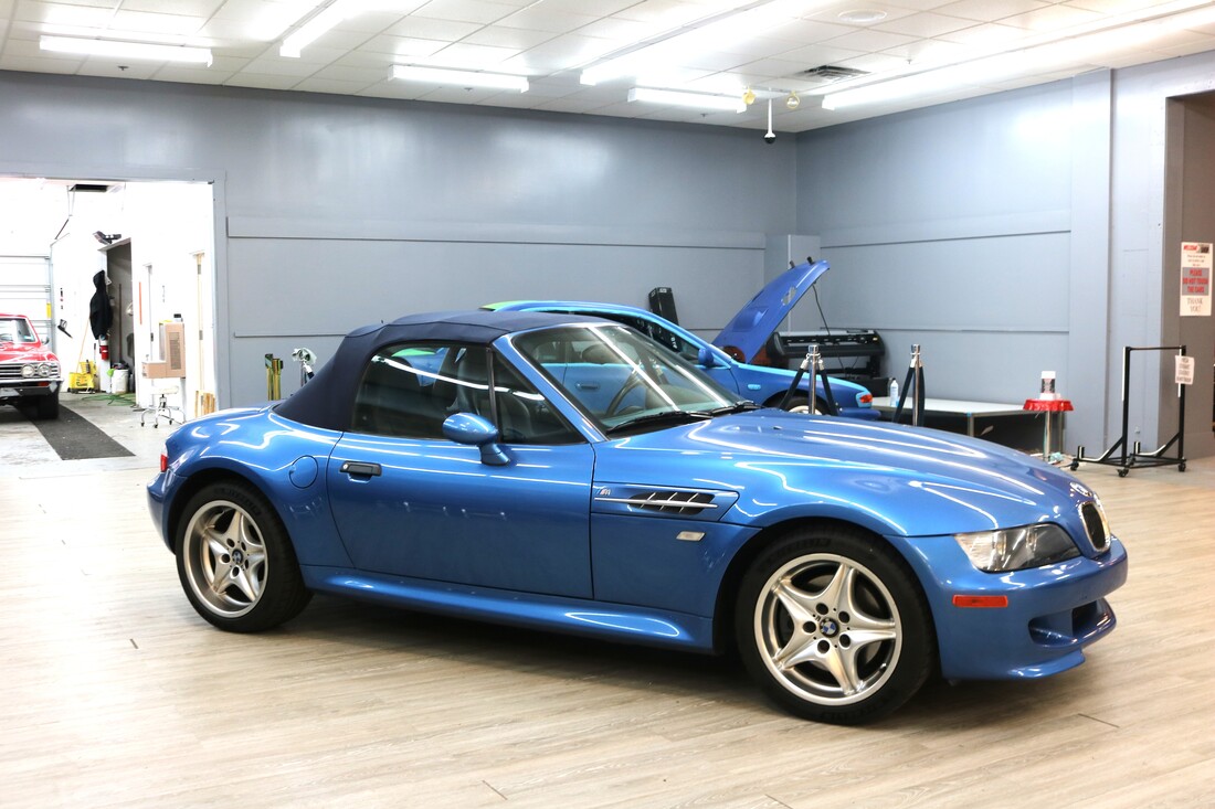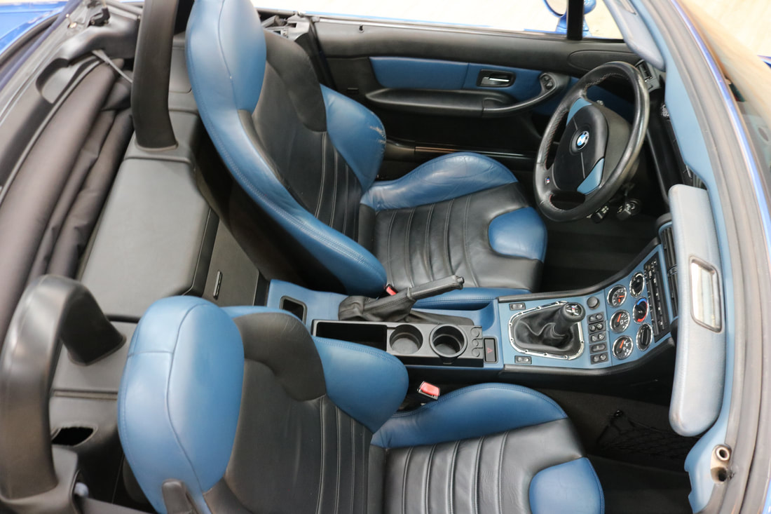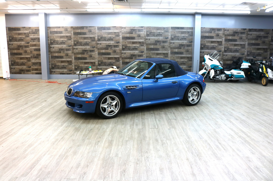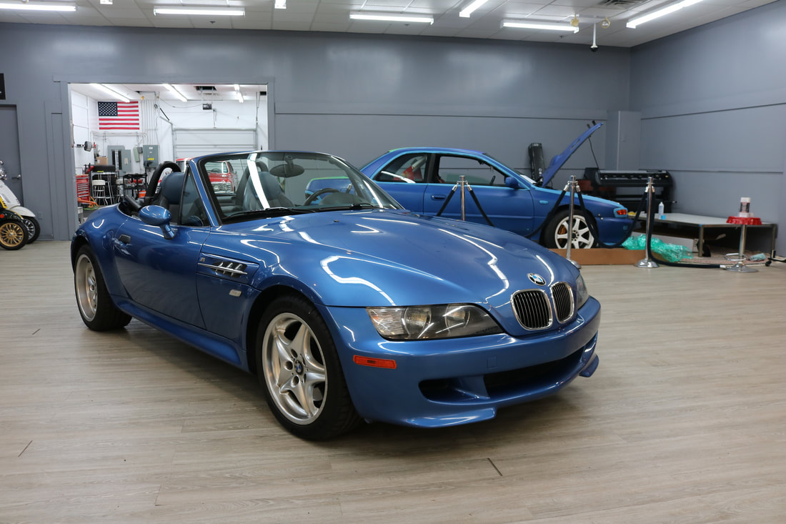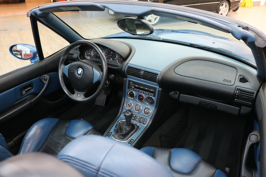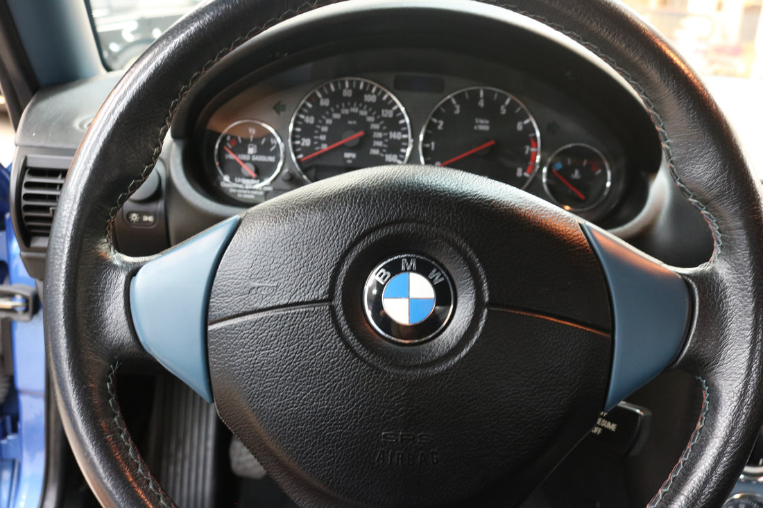 This 2000 BMW M Roadster is finished in Estoril Blue over Estoril Blue and Black leather interior and is powered by a 3.2-liter S52 inline-six mated to a five-speed manual transmission and a limited-slip differential.