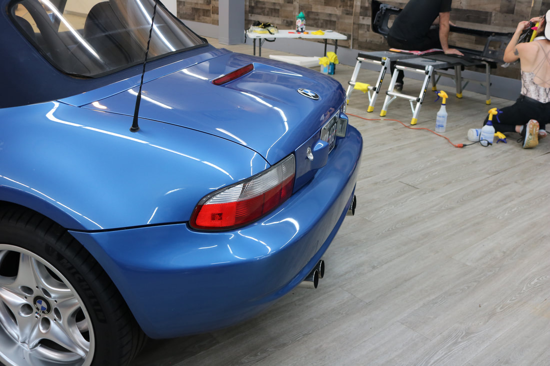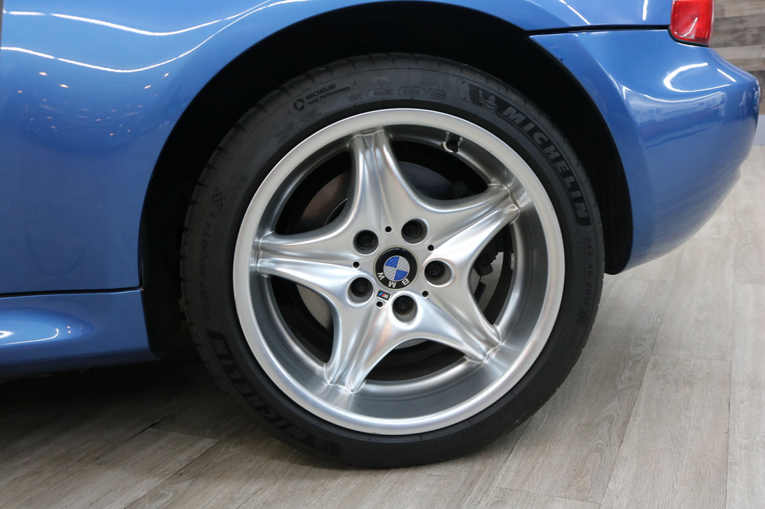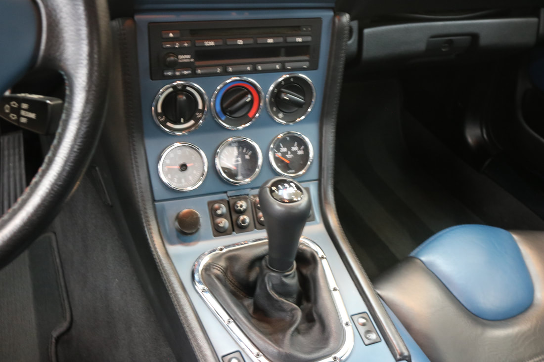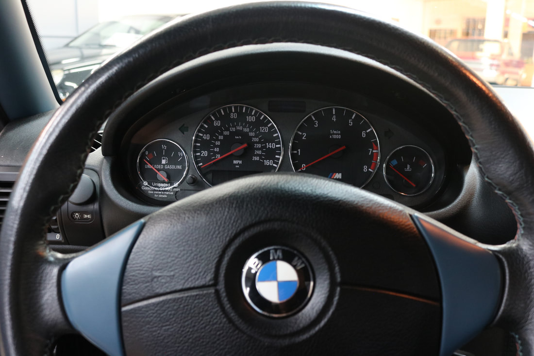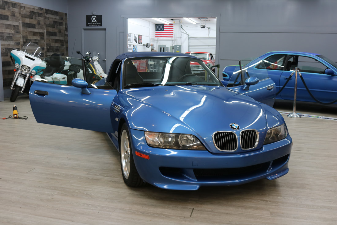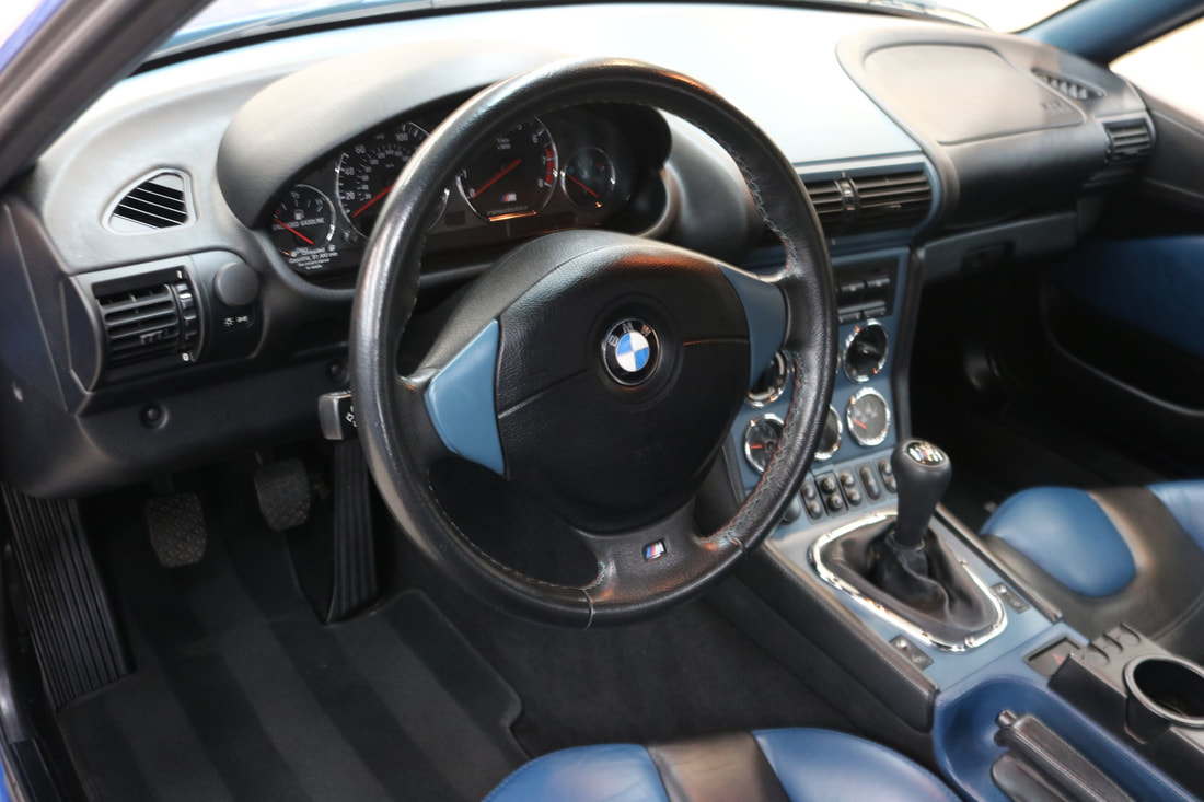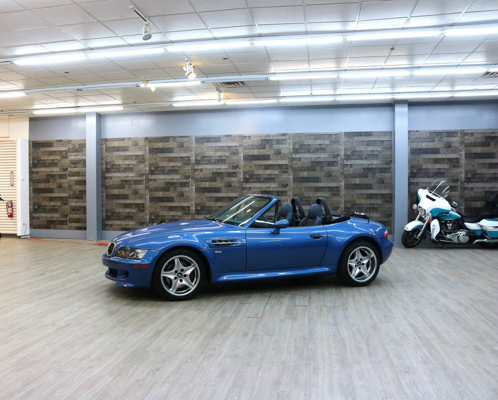 This 2000 BMW M Roadster is finished in Estoril Blue over Estoril Blue and Black leather interior and is powered by a 3.2-liter S52 inline-six mated to a five-speed manual transmission and a limited-slip differential.