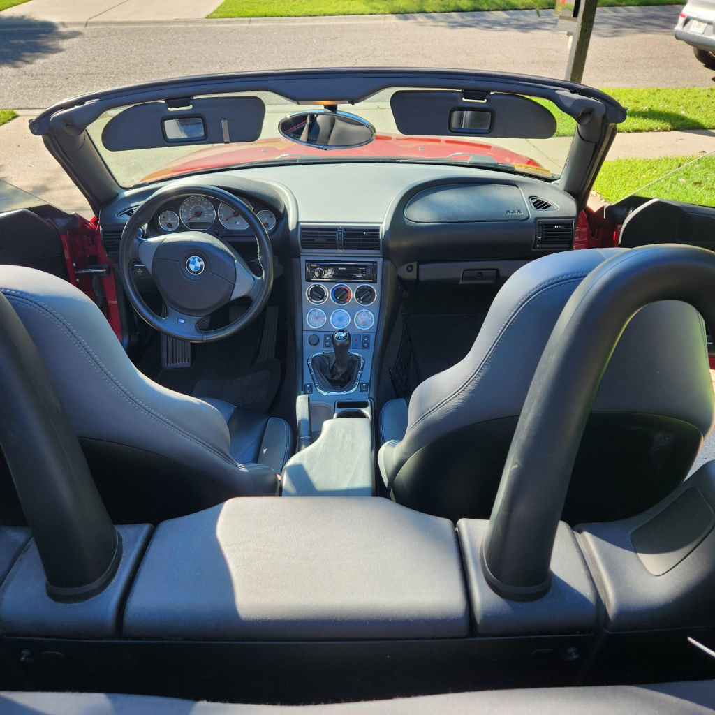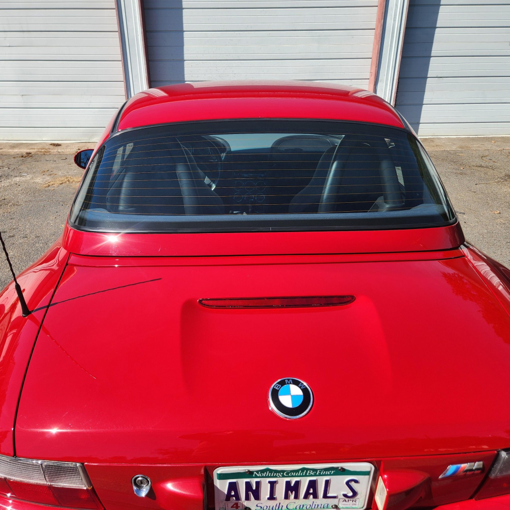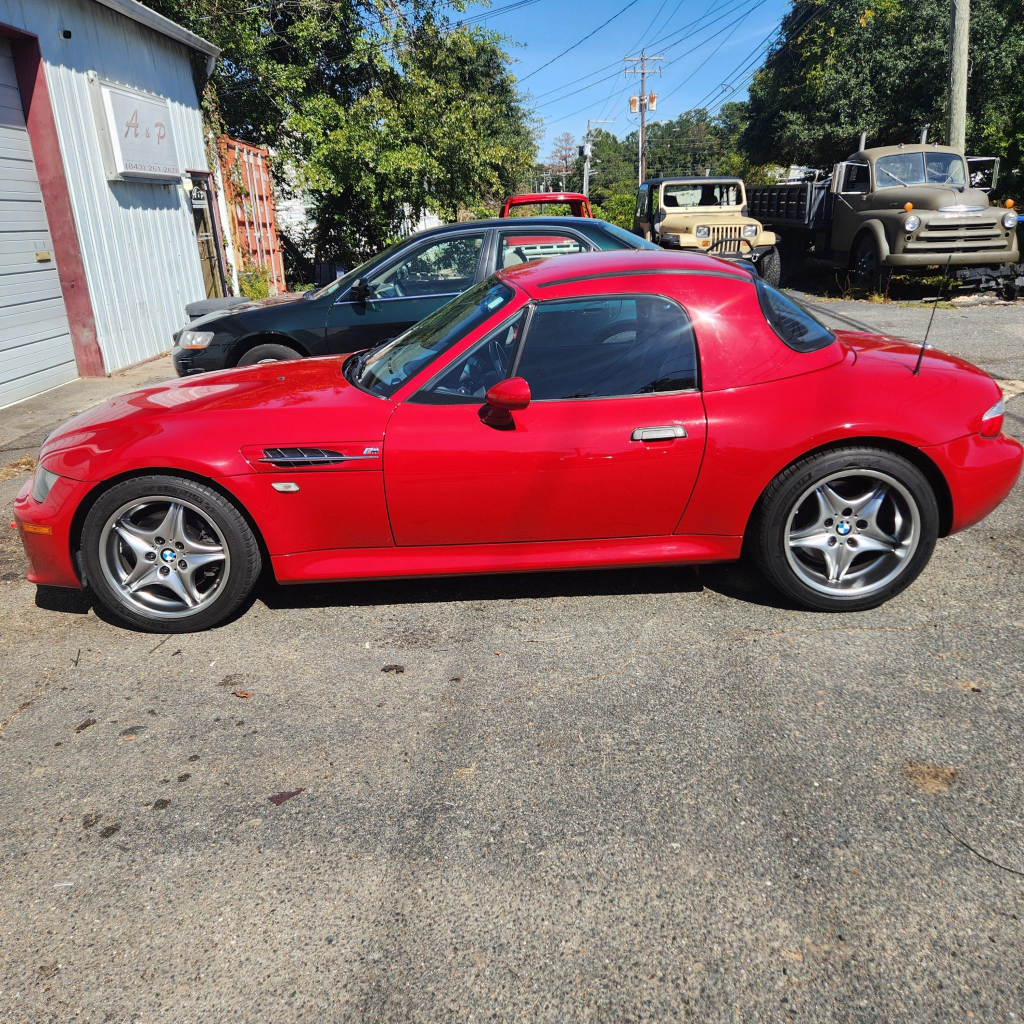This 2002 BMW M Roadster was purchased by the seller in 2005 and has since been driven 41k of the 47k miles indicated. The car is powered by a replacement 3.2-liter S54 inline-six linked with a five-speed manual transmission and a limited-slip differential, and it is finished in Imola Red over black and Dark Gray Nappa leather. Equipment includes a black convertible soft top, a removable hardtop, Shadow-finished 17″ Style 40 wheels, heated sport seats, an alarm system, a Kenwood head unit, a Harman Kardon sound system, air conditioning, and cruise control. This M Roadster is now offered with a clean Carfax report and a clean South Carolina title in the seller’s name.