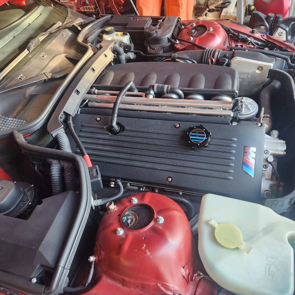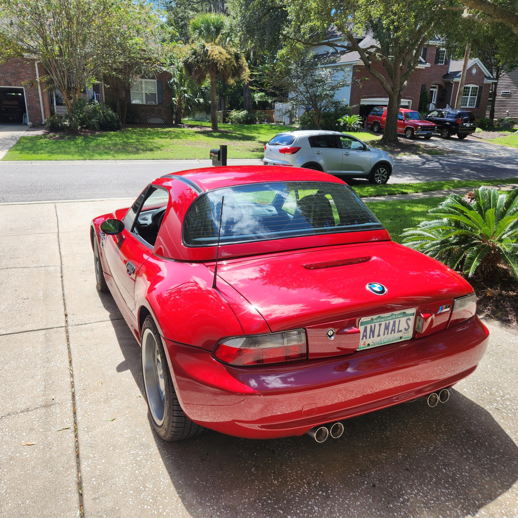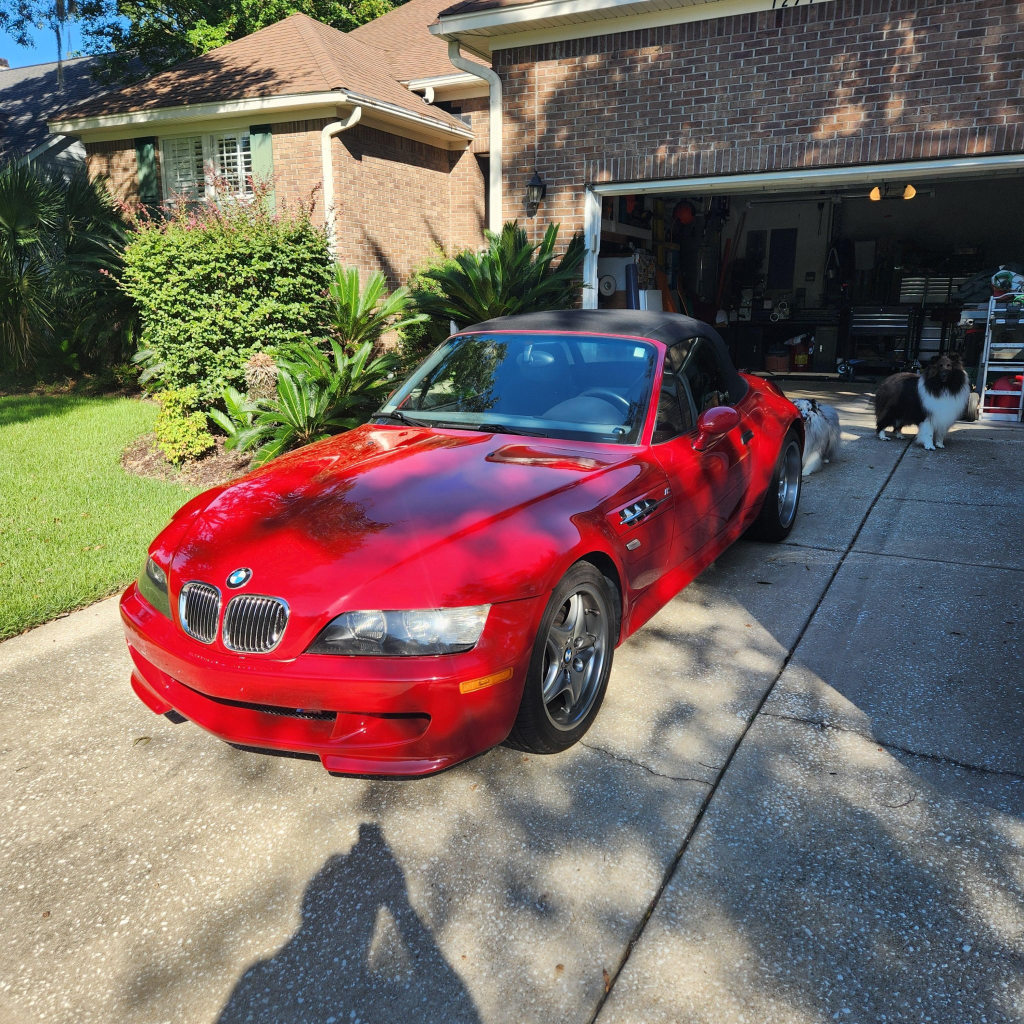 This 2002 BMW M Roadster was purchased by the seller in 2005 and has since been driven 41k of the 47k miles indicated. The car is powered by a replacement 3.2-liter S54 inline-six linked with a five-speed manual transmission and a limited-slip differential, and it is finished in Imola Red over black and Dark Gray Nappa leather. Equipment includes a black convertible soft top, a removable hardtop, Shadow-finished 17″ Style 40 wheels, heated sport seats, an alarm system, a Kenwood head unit, a Harman Kardon sound system, air conditioning, and cruise control. This M Roadster is now offered with a clean Carfax report and a clean South Carolina title in the seller’s name.