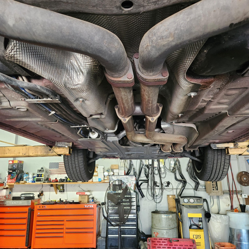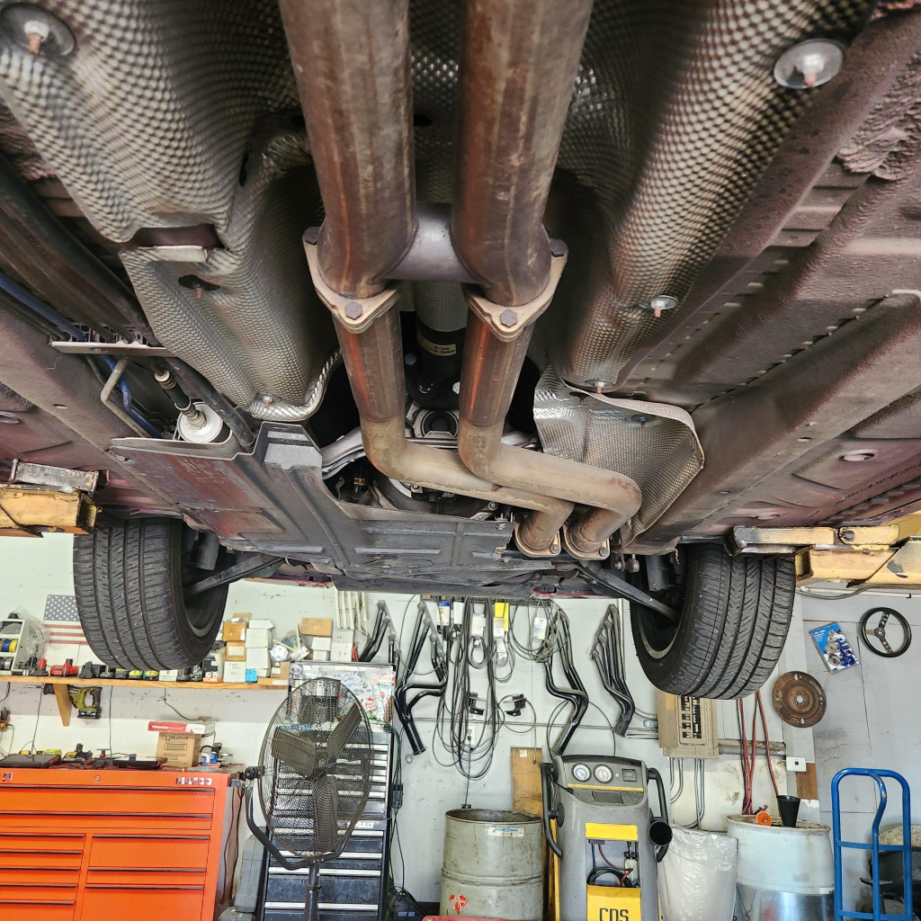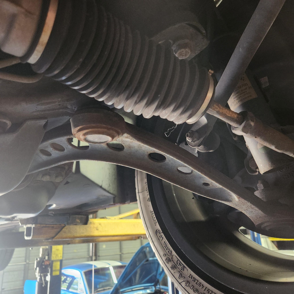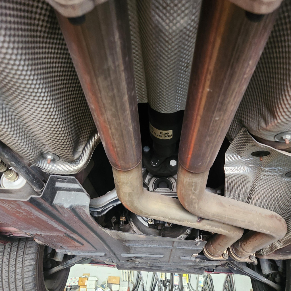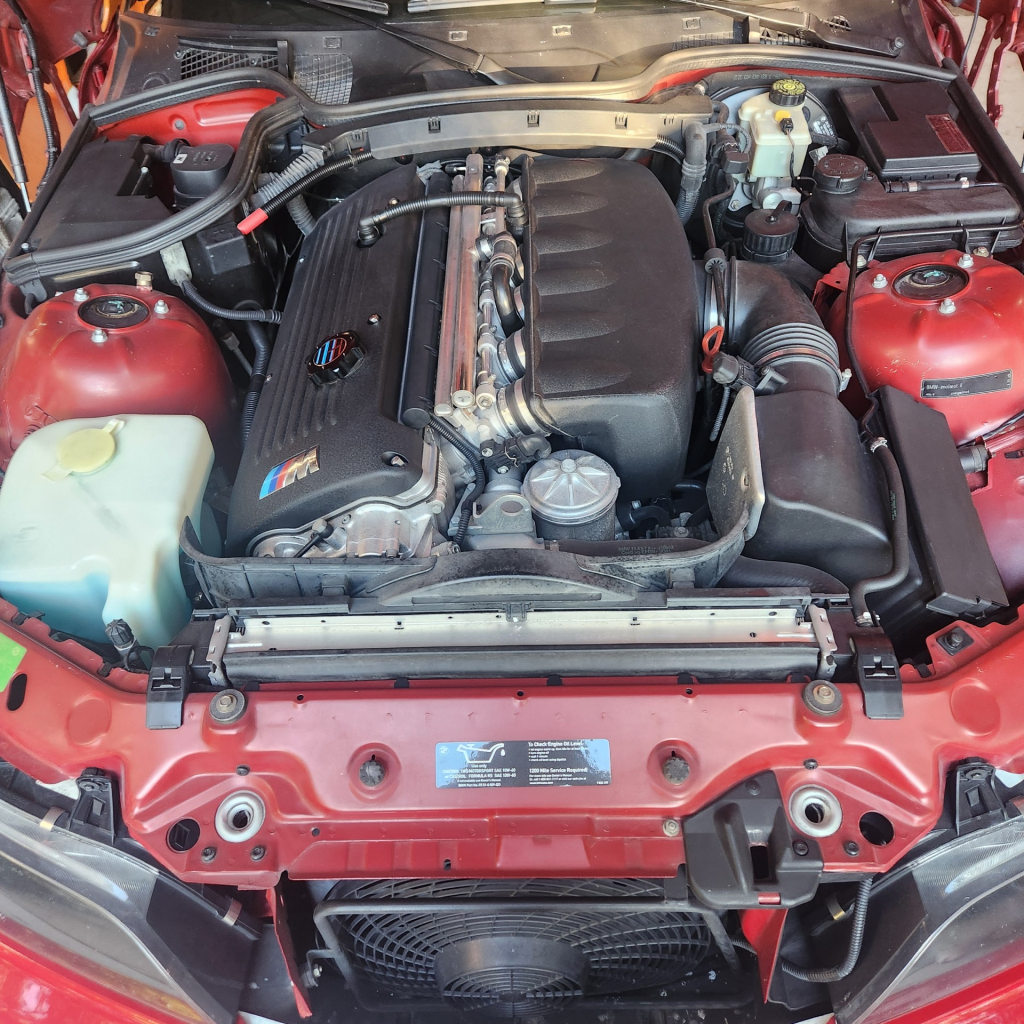 The replacement 3.2-liter S54B32 inline-six was installed in January 2007 by Rick Hendrick BMW of Charleston, South Carolina, and features double-VANOS variable valve timing and a Siemens MSS 54 engine management control system. Output was factory rated at 315 horsepower and 258 lb-ft of torque. Power is sent to the rear wheels through a ZF five-speed manual transmission and a limited-slip differential. The seller notes that the trunk welds/differential mounts have not been addressed.