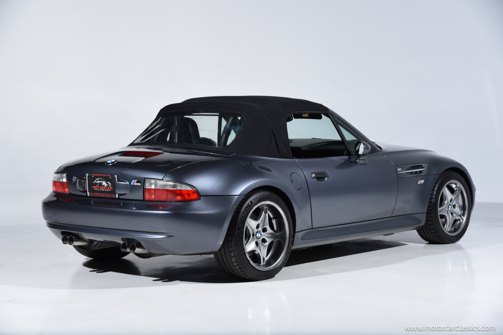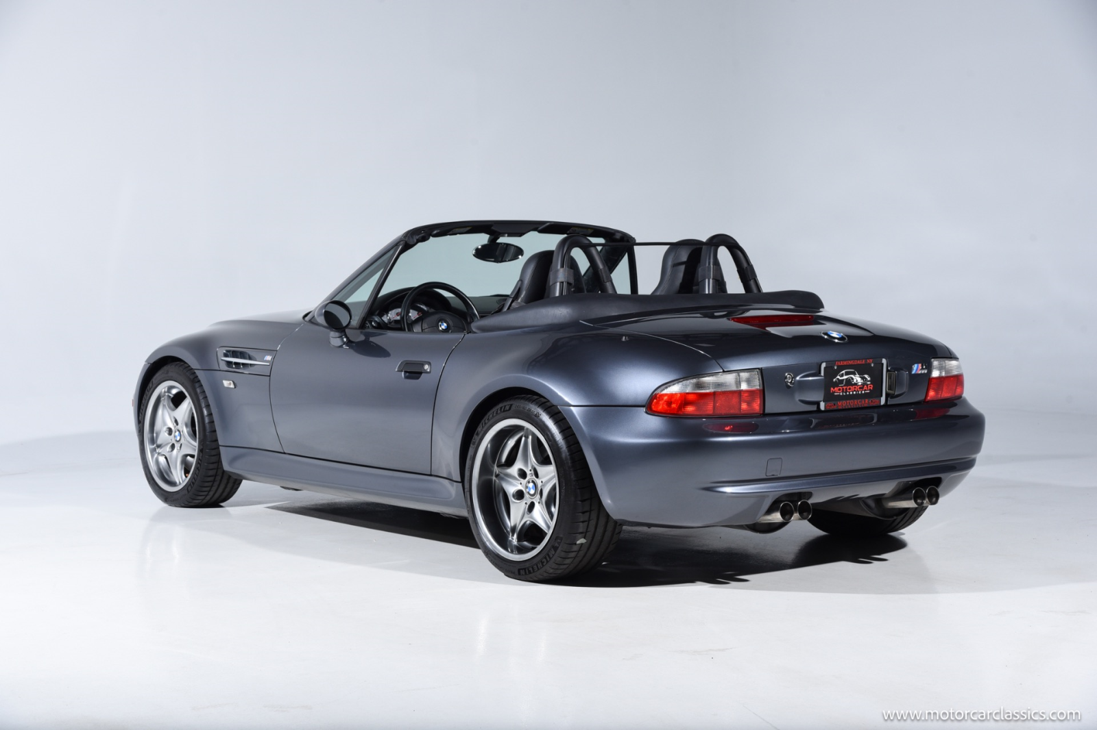 2002 BMW M Roadster for sale. Motorcar Classics is proud to present the 2002 BMW M Roadster finished in striking Steel Gray Metallic over supple black Nappa leather, this 2002 BMW M Roadster captures the essence of BMW's Motorsport heritage with just 57,909 miles from new. Power comes from the revered 3.2-liter S54 inline-six shared with the E46 M3, producing 315 horsepower and 251 lb-ft of torque through a precise 5-speed manual gearbox. Weighing just over 3,100 pounds and delivering a 060 mph time of around five seconds, this M Roadster offers blistering performance wrapped in timeless open-top styling.