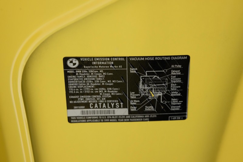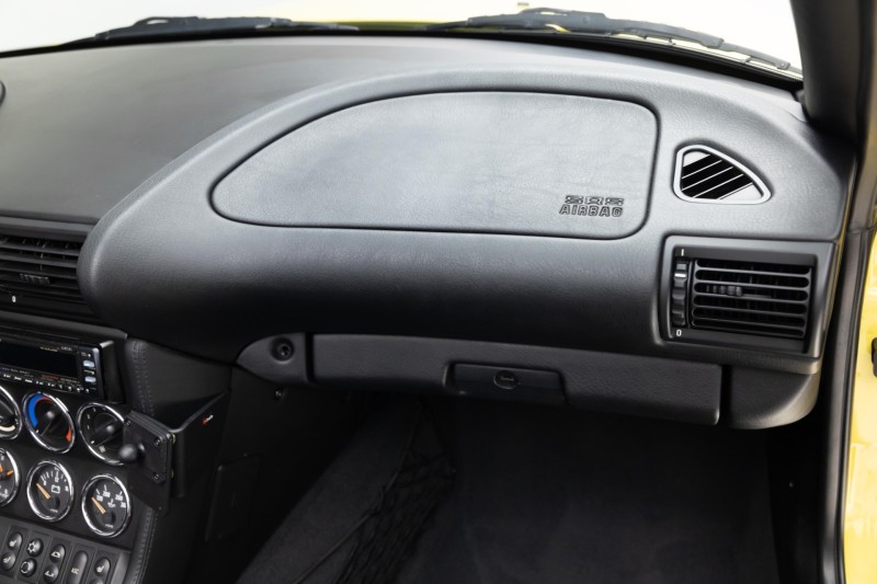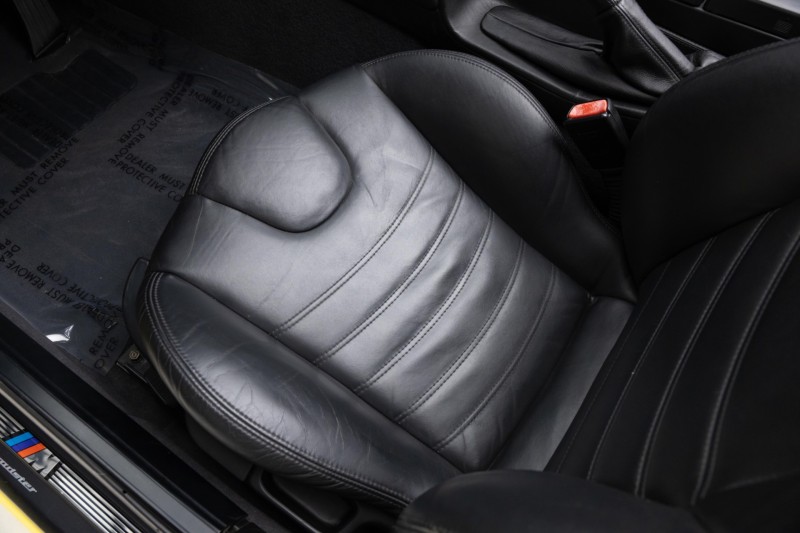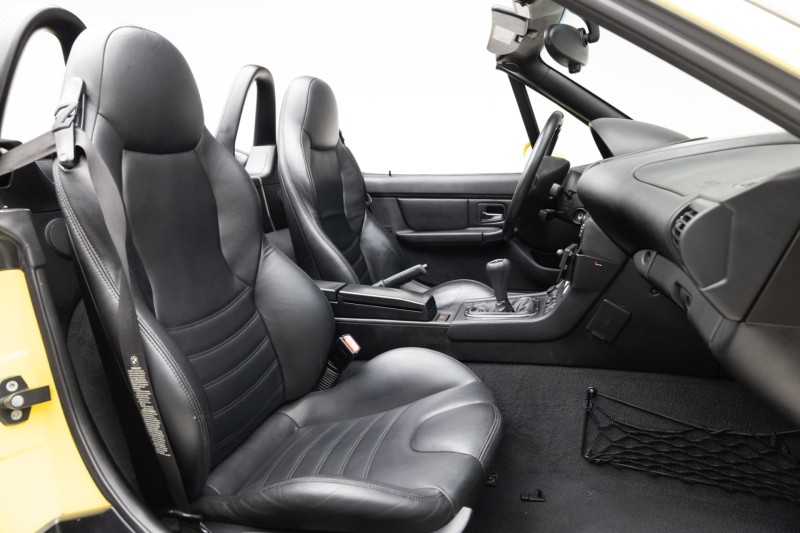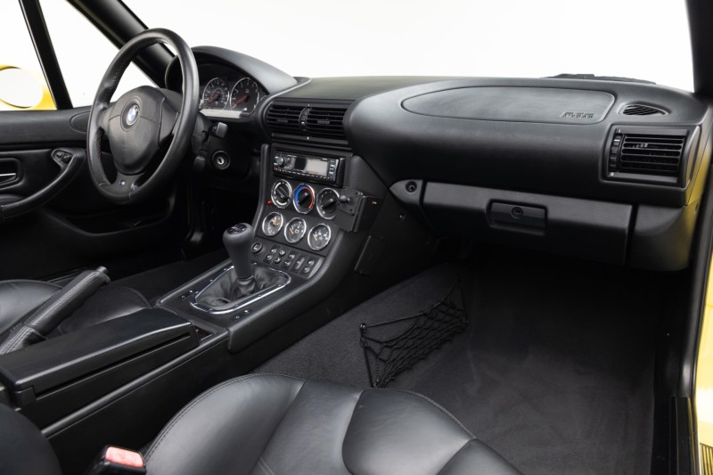 The exterior of this Z3 M is finished in the striking Dakar Yellow, a color that not only turns heads but also pays homage to BMW's racing heritage. This vibrant hue is complemented by the sleek lines and muscular stance of the Z3 M, creating a visual impact that is both bold and sophisticated.